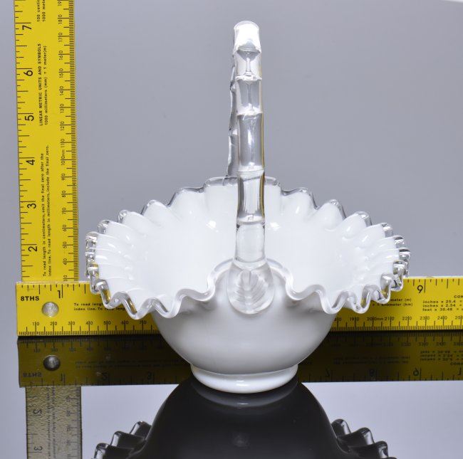 Vintage glass basket. SIZE: see attached ruler photo. Photos are part of the description representing the condition report and can be used for authentication prior to the sale date. Pangaea Auctions urges Bidder's to view all attached photos in detail.