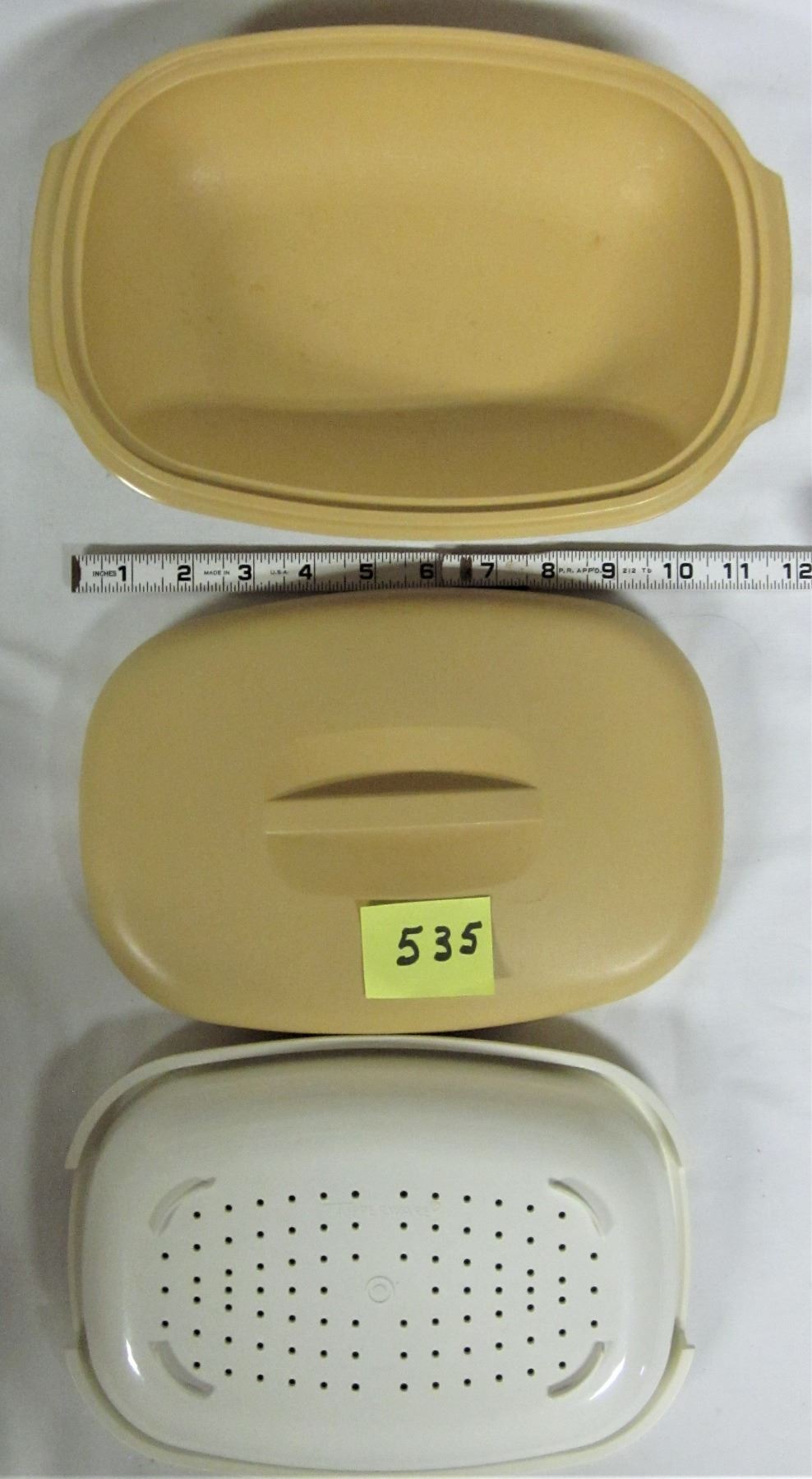 Vintage gold plastic Tupperware microwave steamer with lid & insert