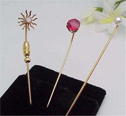 Vintage gold stickpins opal, pearl and synthetic ruby 4.9gr