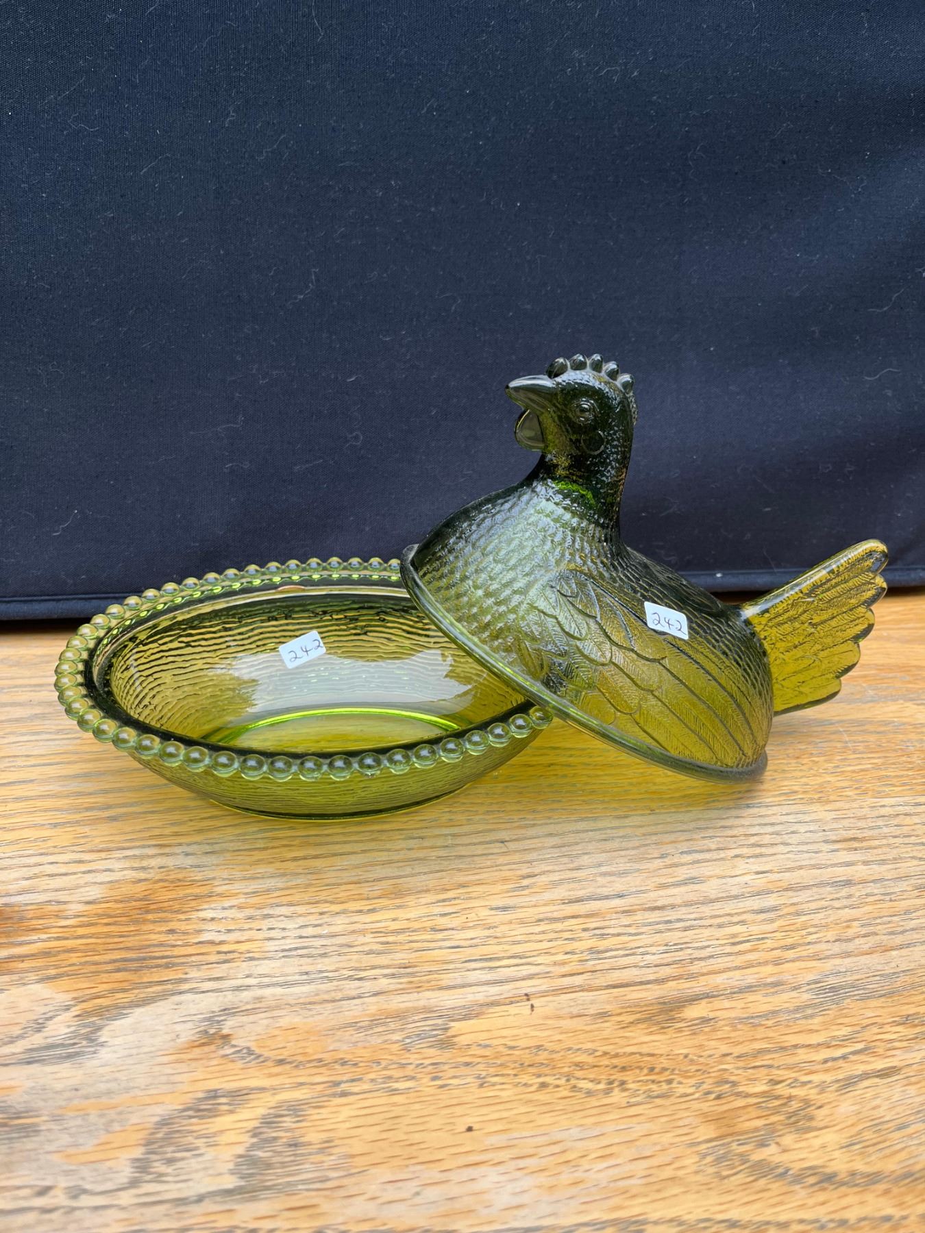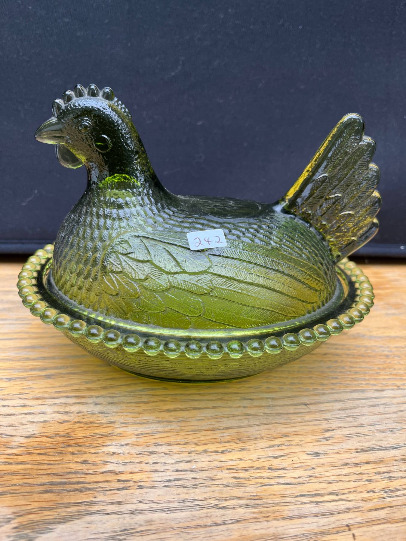Vintage green hen on a nest