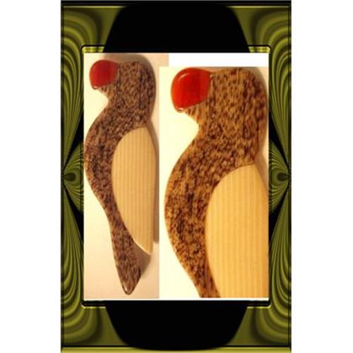 This is a really beautiful Lea Stein Parrot brooch that is signed on the back Lea Stein Paris. Made from galalith, a plastic material, each one is hand cut and polished in her Paris workshop. He (the parrot)is made of ivory color and wood colored pieces with a carnelian colored nose. THis is from a Lea Stein collector who has taken very good card of him. He measures 3 1/3" long with a good working clasp and hinge. You don't need to be a Lea Stein collector to love this parrot!