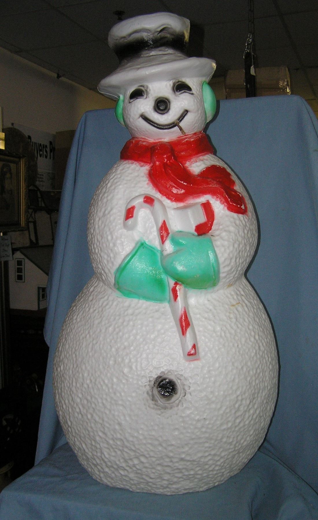 Vintage illuminated snowman 39 inches high by 20 inches wide manufactured by Union Products Massachusetts est. value $65.00-$75.00