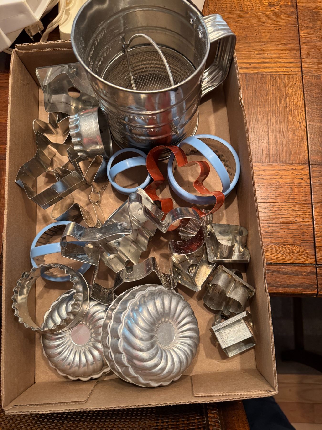 Vintage kitchen items, cookie cutters, flower sifter, etc
