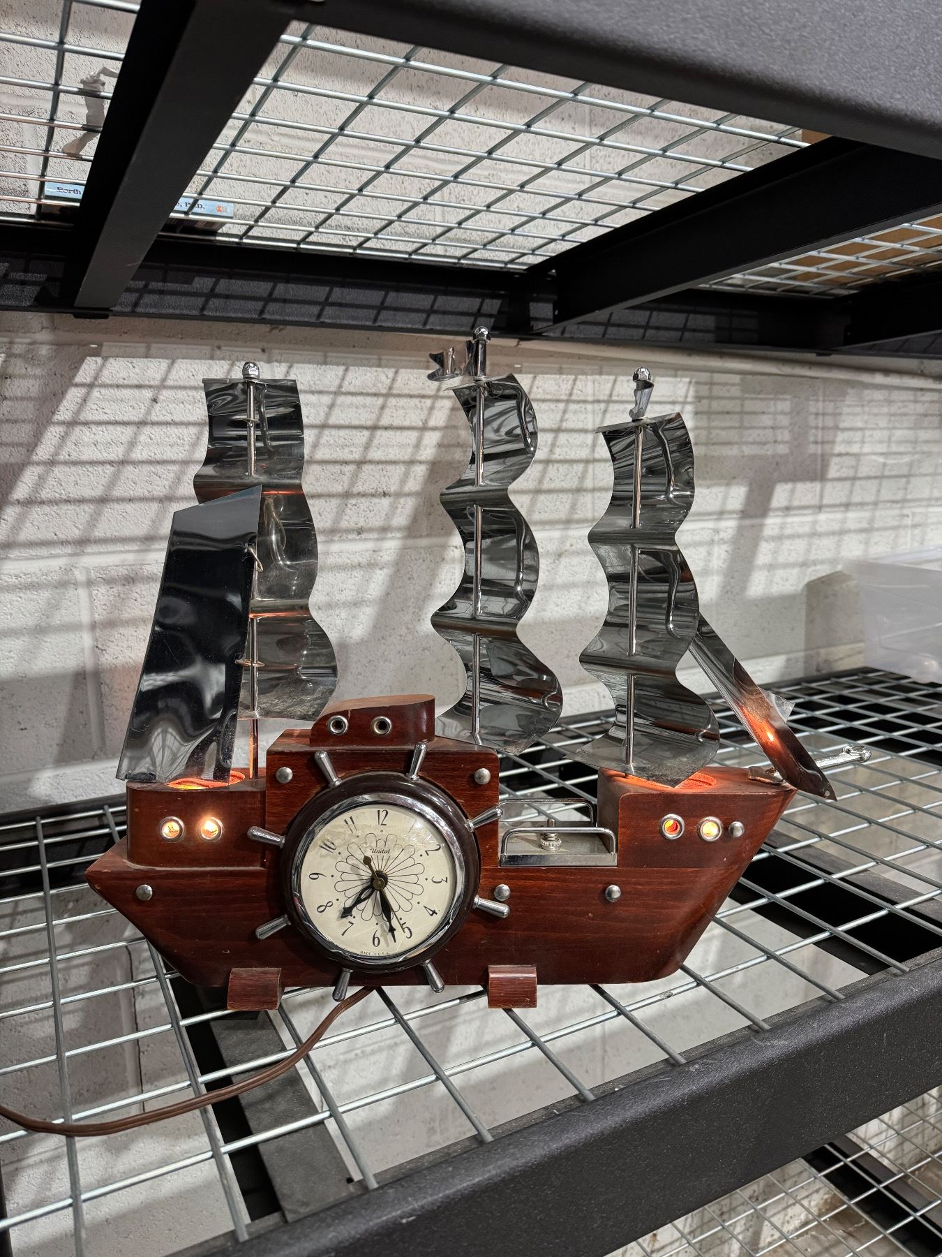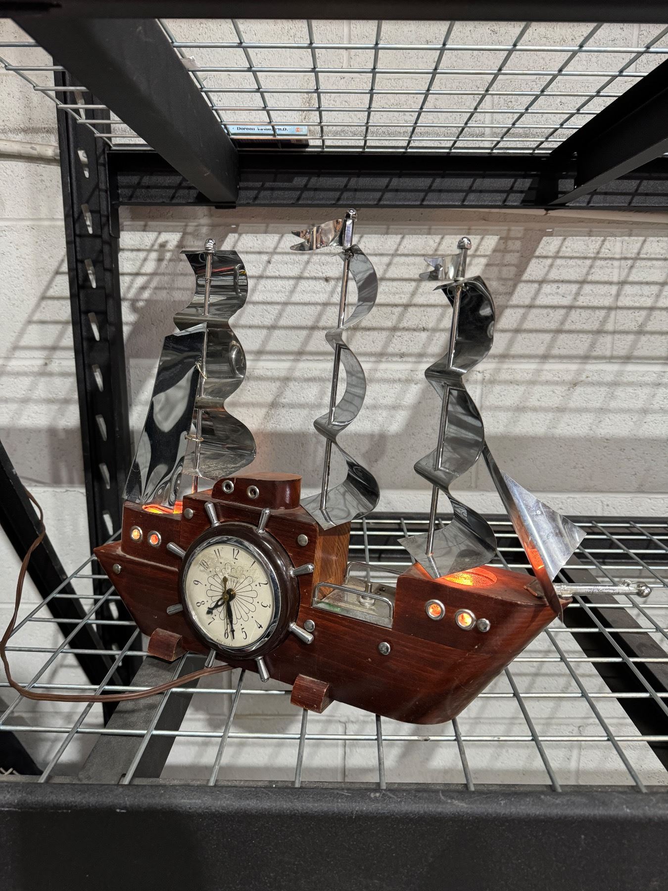 Vintage light up ship clock working