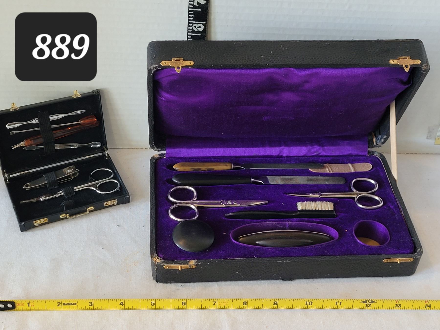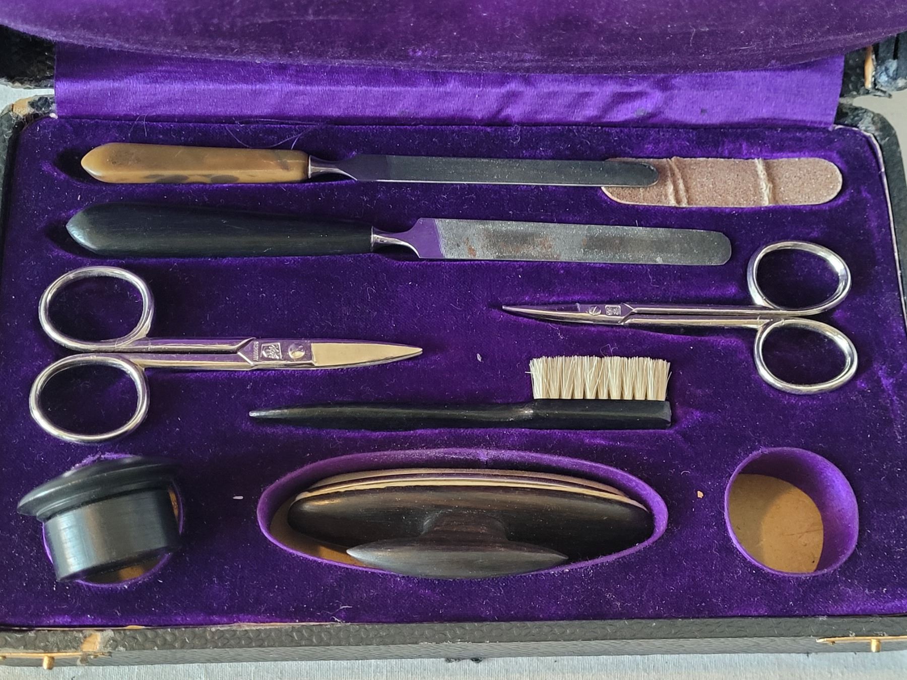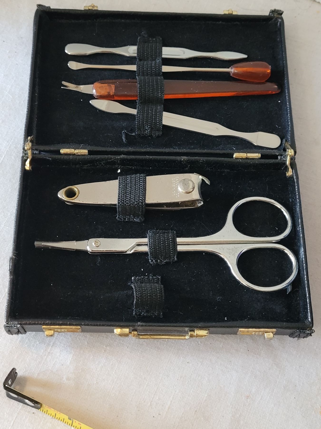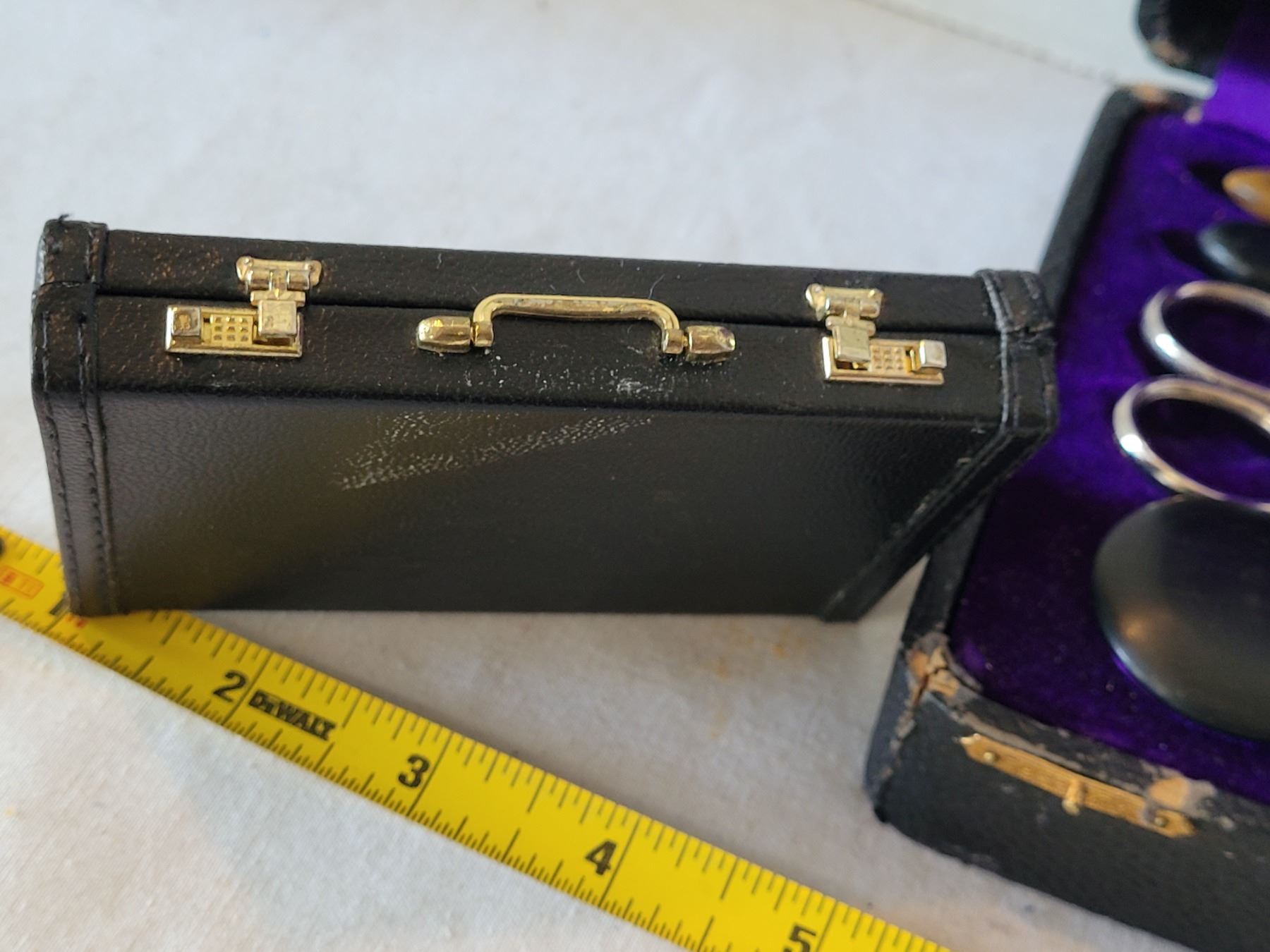 Vintage manicure set. Travel size manicure set in tiny suitcase.