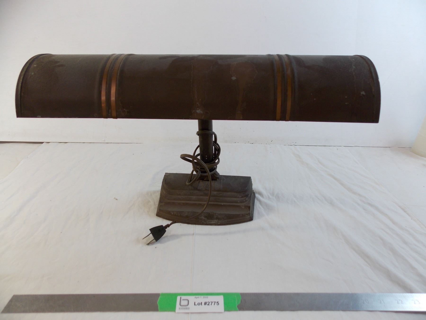 Vintage metal desk lamp (cord frayed on end, untested) - 17" bulb, 18" wide shade
