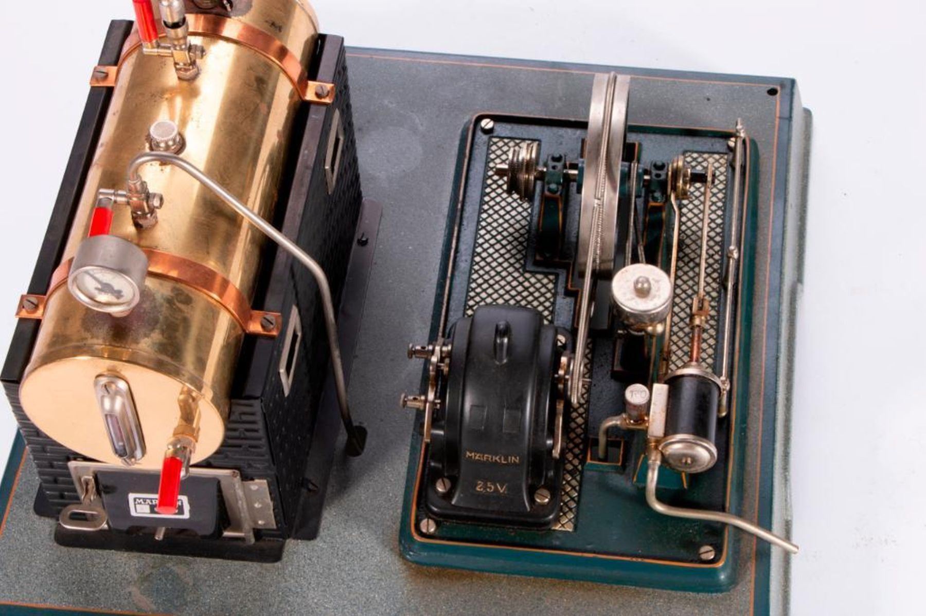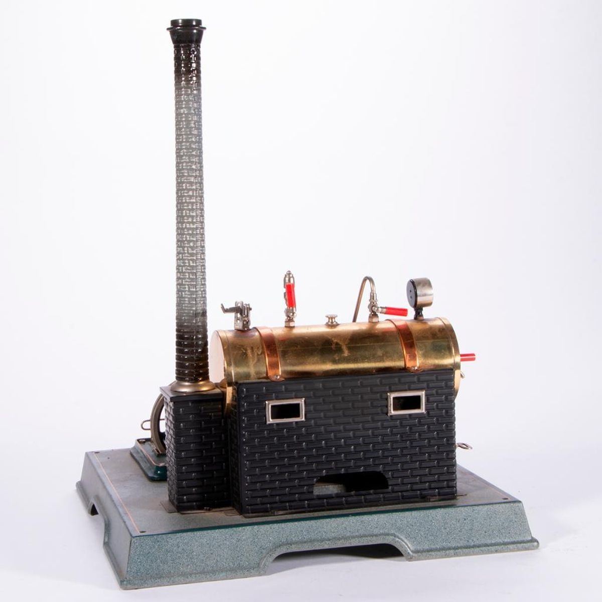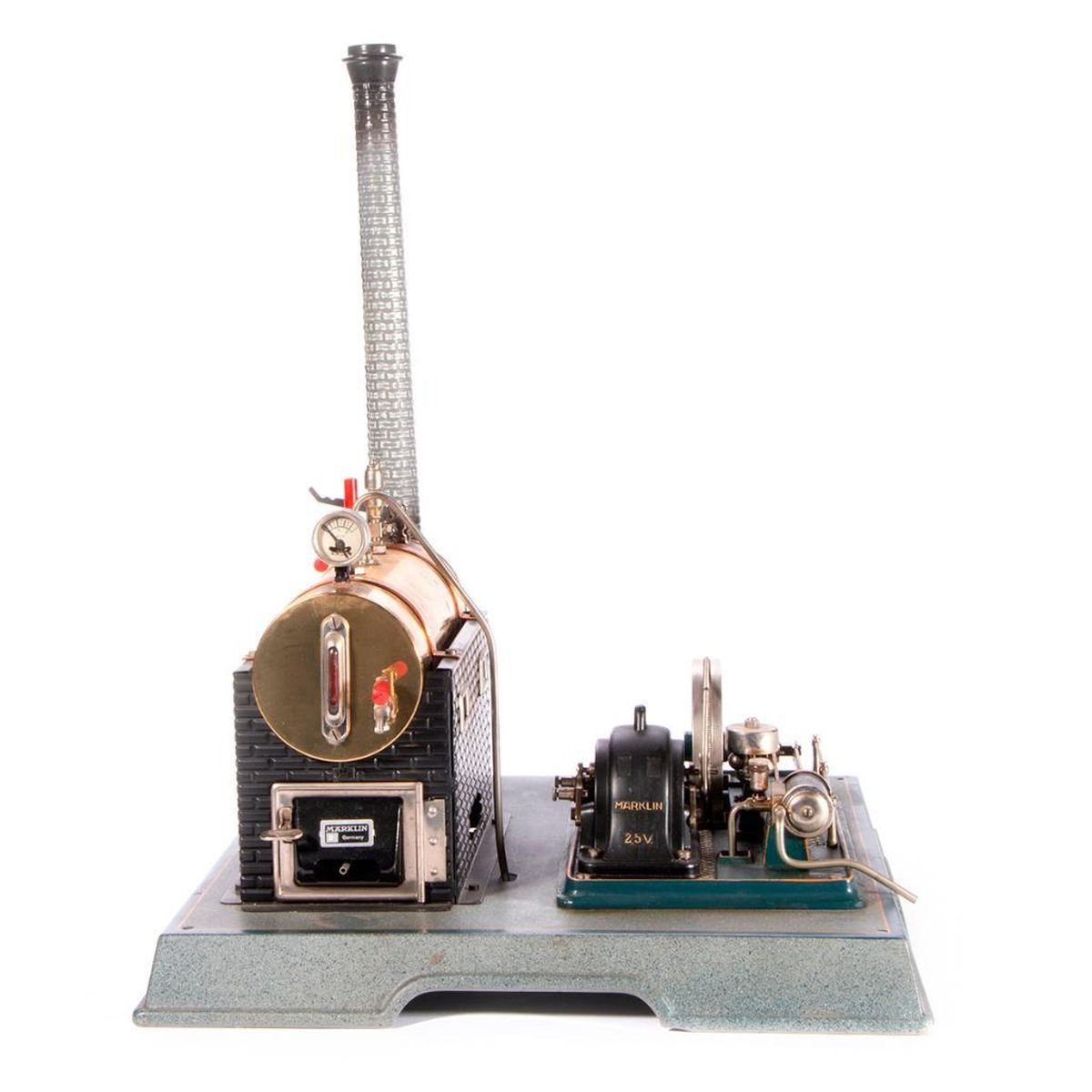 A vintage German model steam engine marked Marklin, Germany measuring 16 1/2 inches high x 12 3/4 square. As shown. Items are sold as is. Please inquire about condition if not otherwise stated.