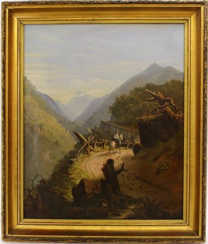 two rides on horse back, initials GH 18?? (unreadable) lower left corner, overall good condition, image 25" X 30". Est. 350-600