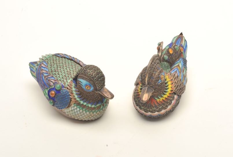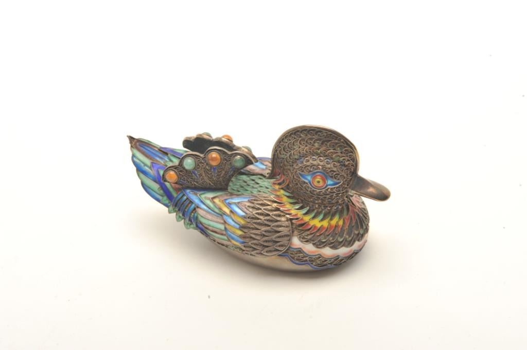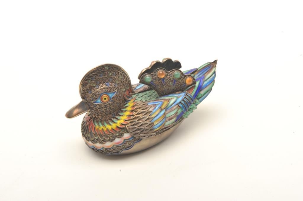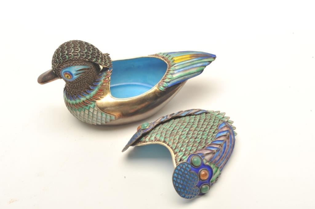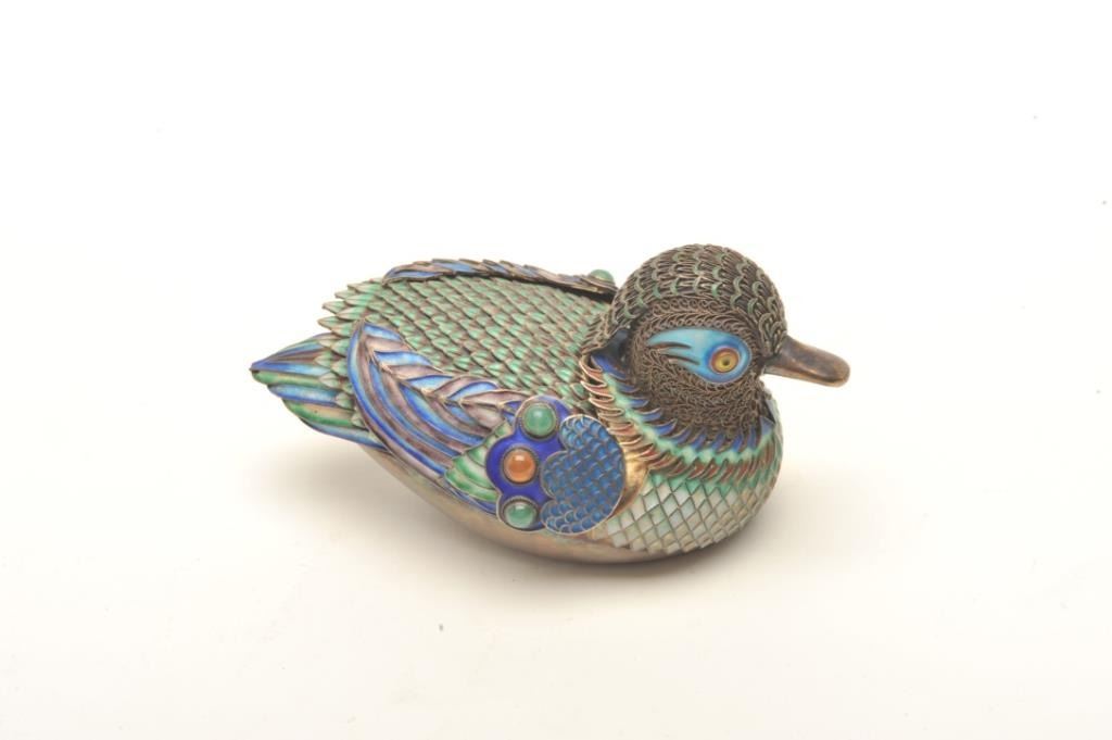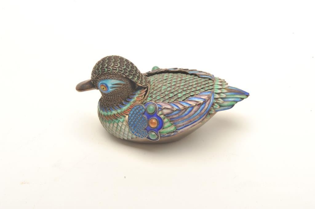 Vintage oriental style enamel on brass showing figures of ducks. From estate. Est.: $100-$200