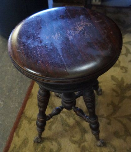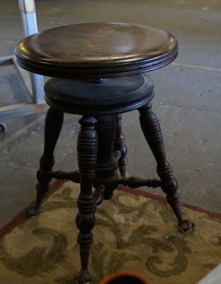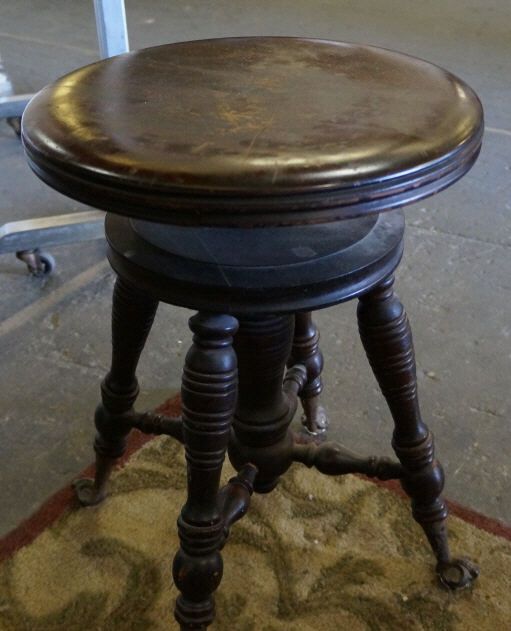 Vintage piano stool, adjustable. Approximately 14 inches in diameter with adjustable height