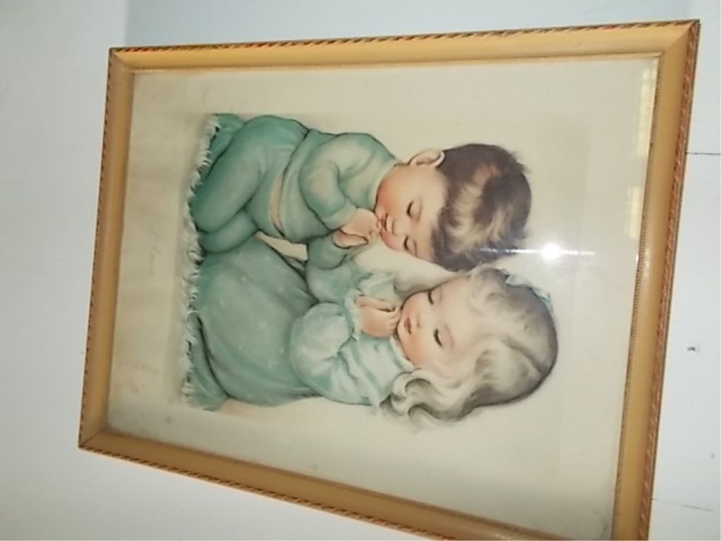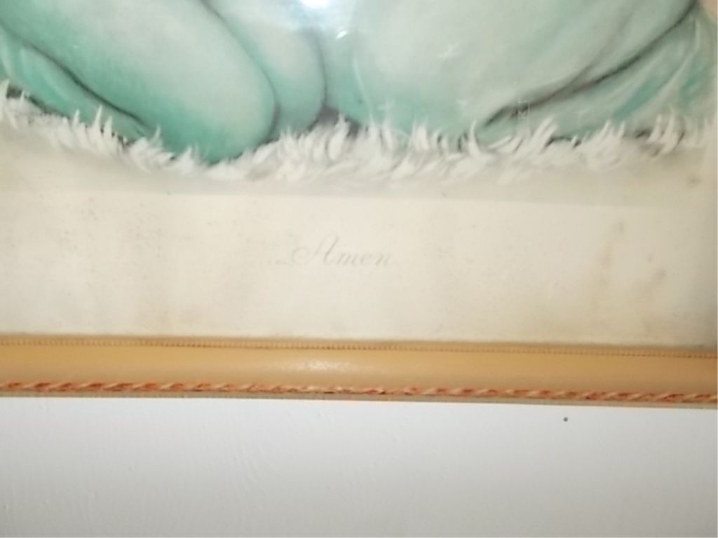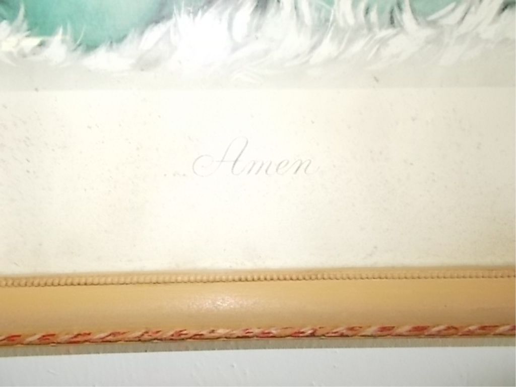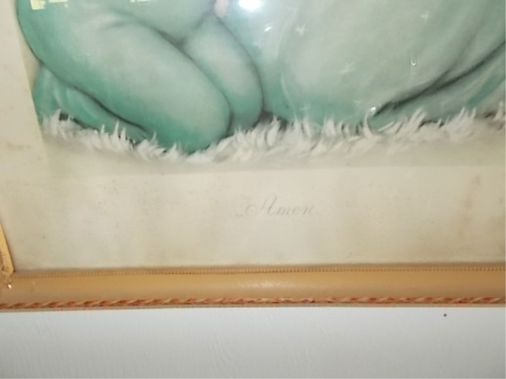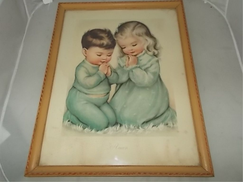 Two children praying named Amen. Picture is a little dirty on bottom needs to be cleaned