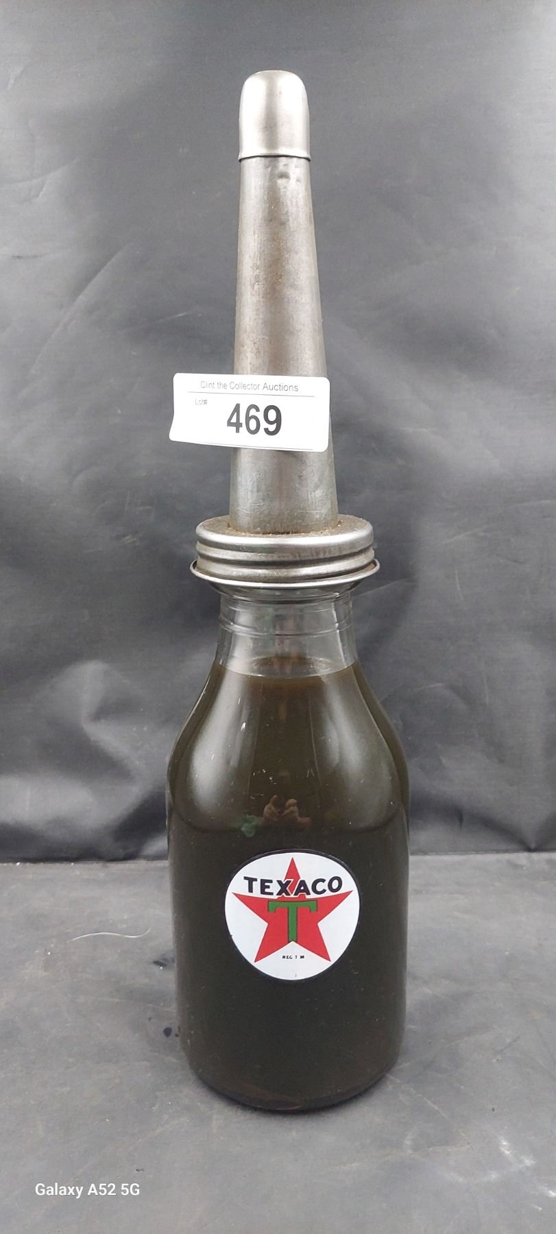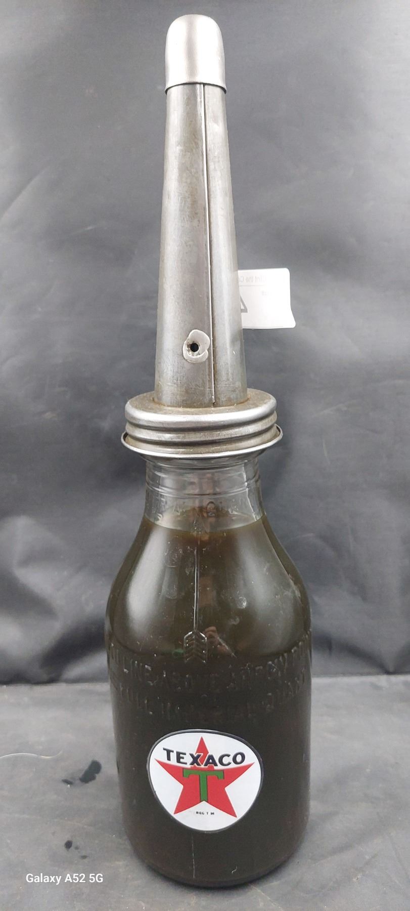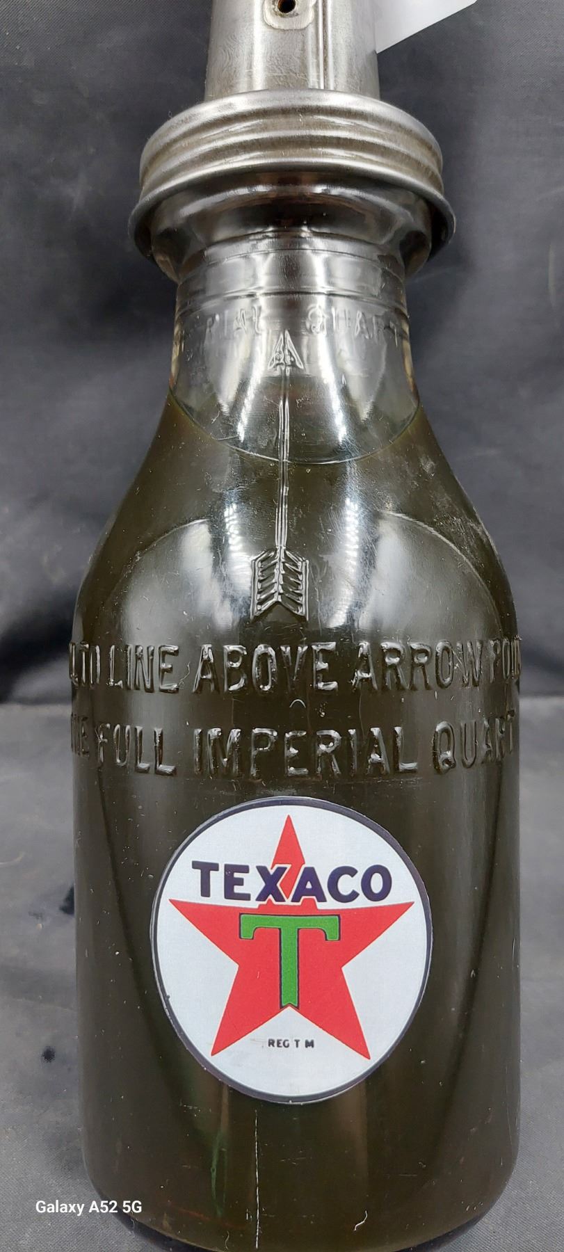 Vintage quart oil bottle with reproduction texaco decals