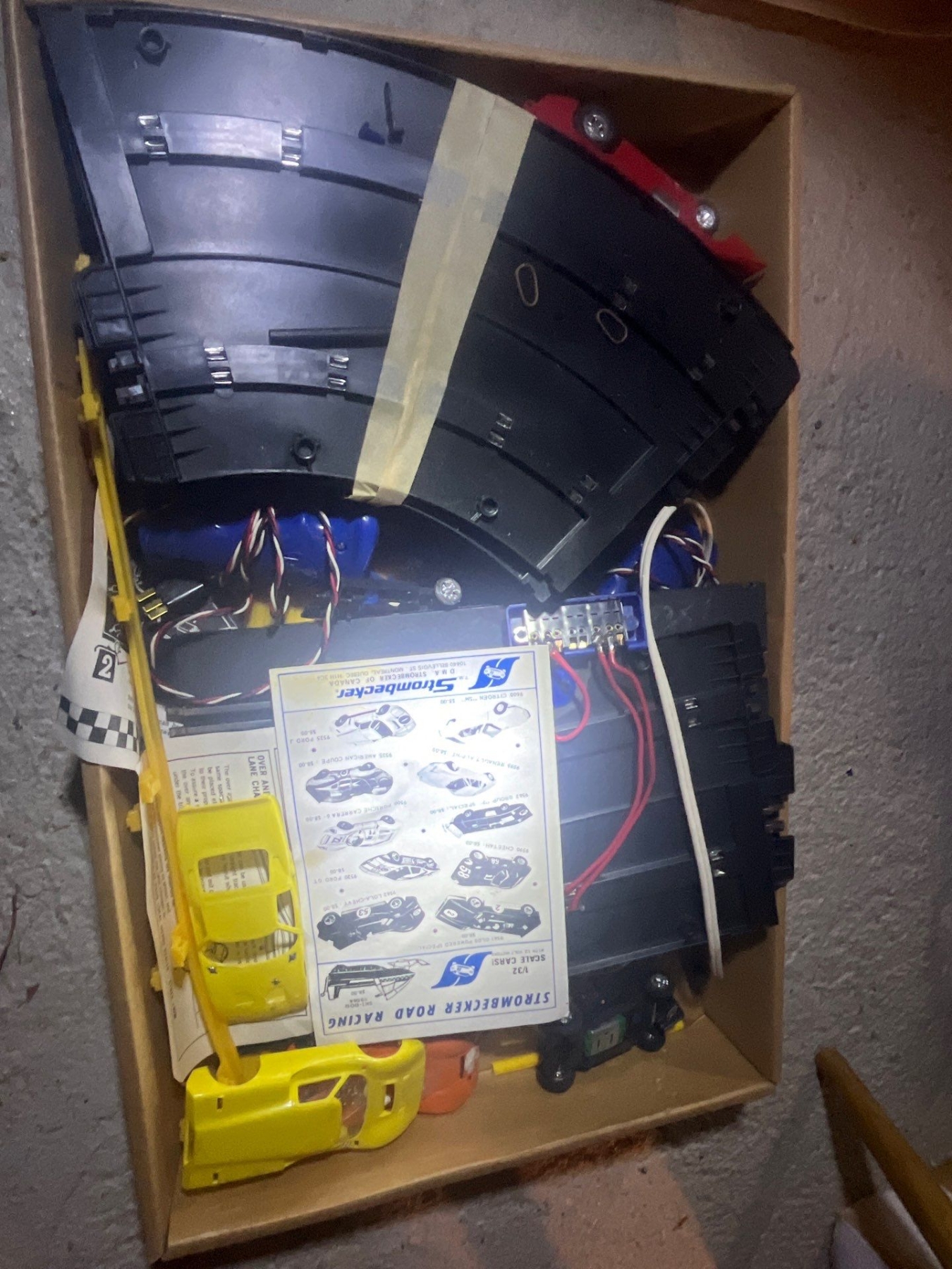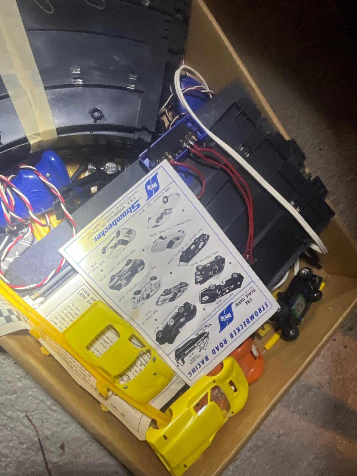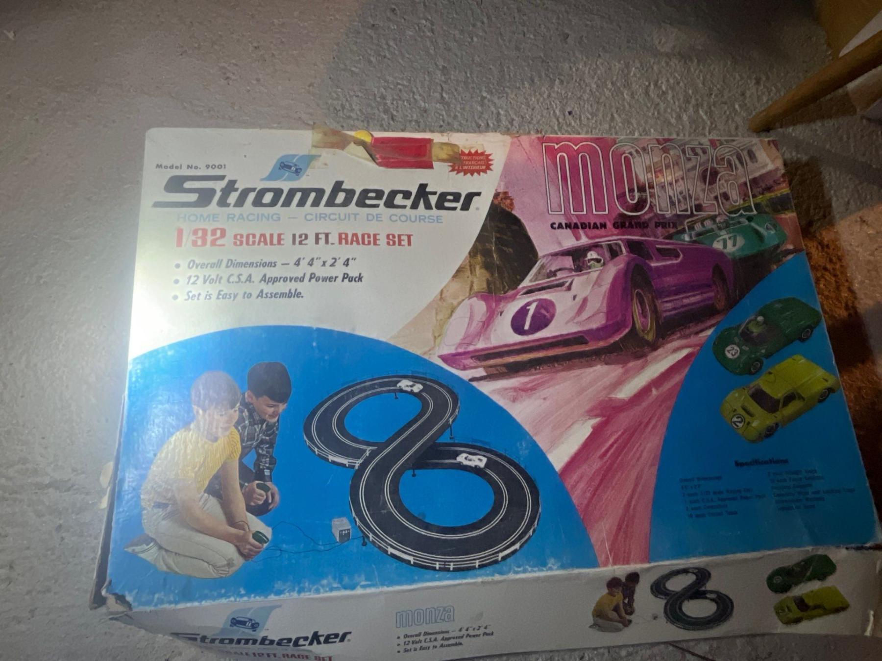 Vintage retro stormdecker Monza slot car home racing set. 12 V CSA approved power pack easy to set up an assemble. Never Been used In Greta condition with original box
