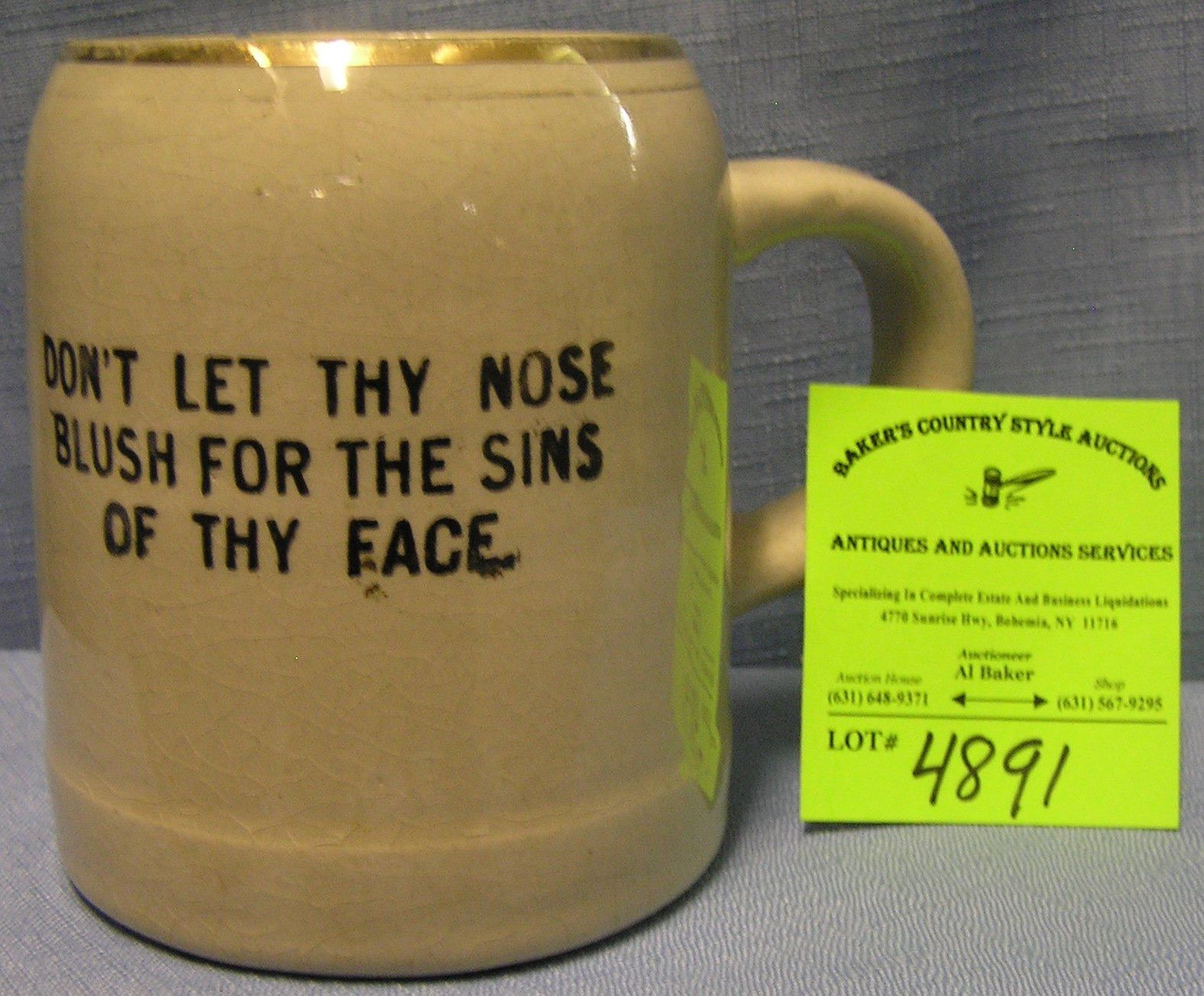 Vintage shaving mug titled Do not Let Thy Nose Blush For The Sins Of Thy Face $50.00-$75.00