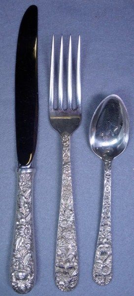 3 piece set, fork, spoon and table knife, stamped sterling Kirk & Son Very Collectible!