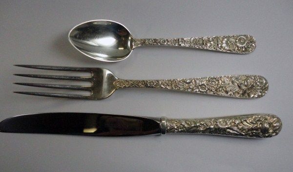 3 piece set, fork, spoon and table knife, stamped sterling Kirk & Son Very Collectible!