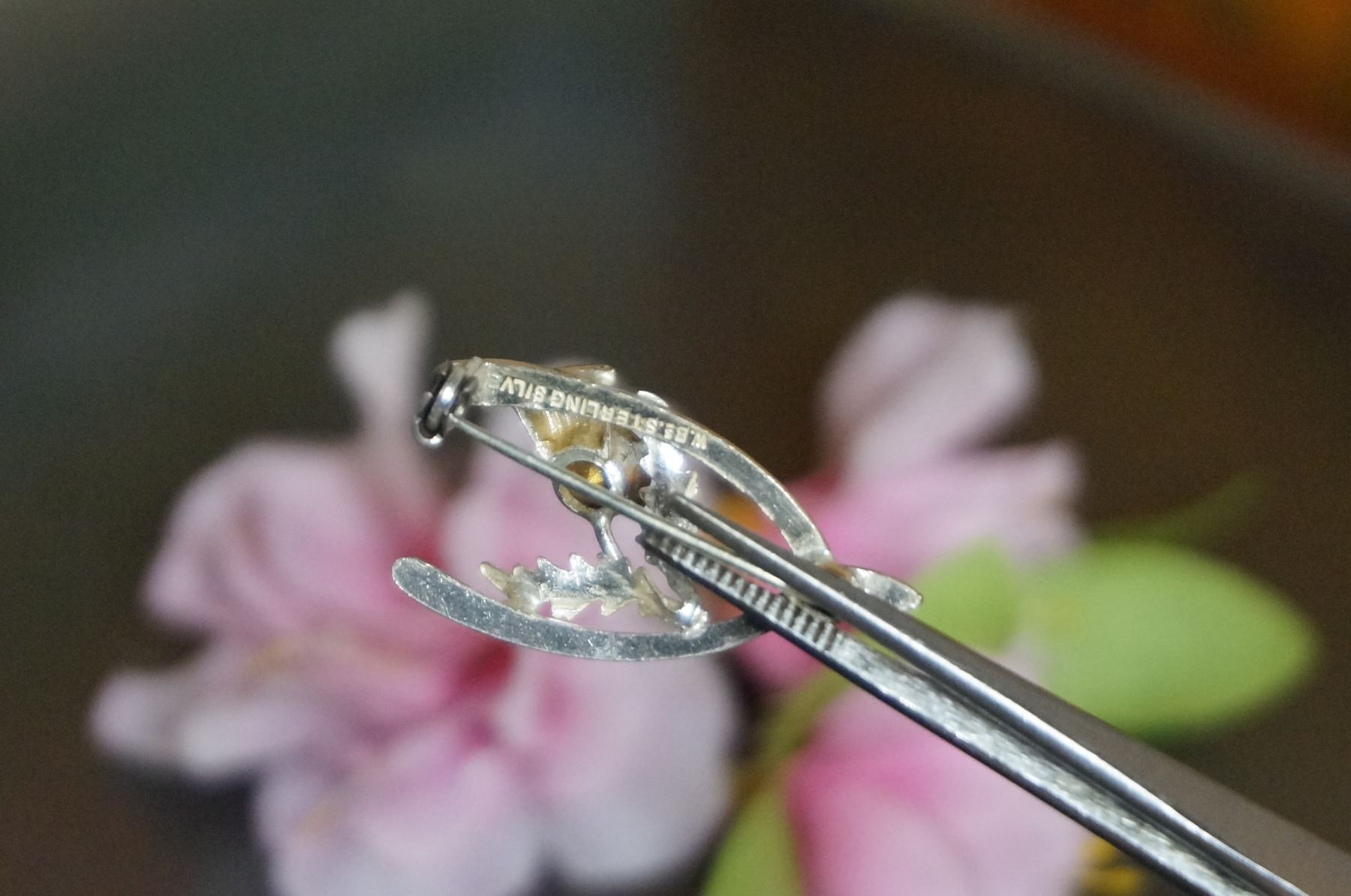 Vintage silver Scottish brooch with thistle and Amethyst paste stone