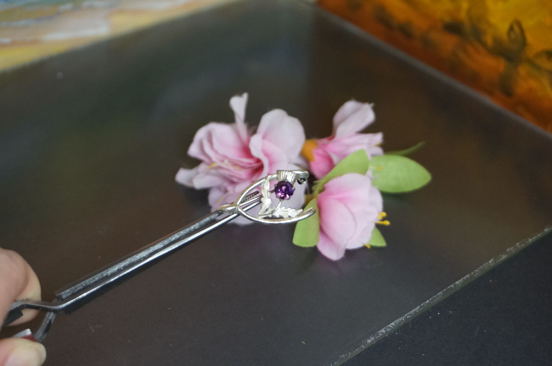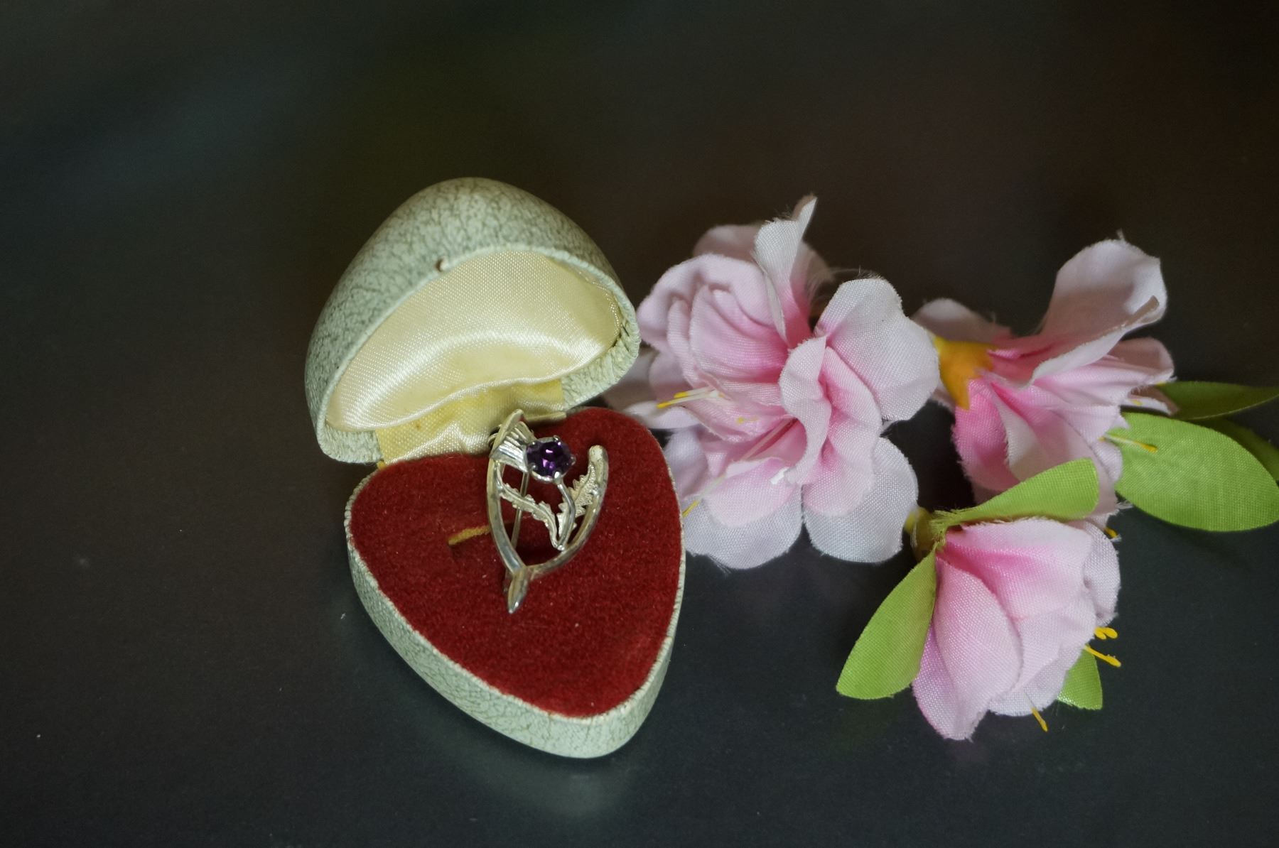 Vintage silver Scottish brooch with thistle and Amethyst paste stone