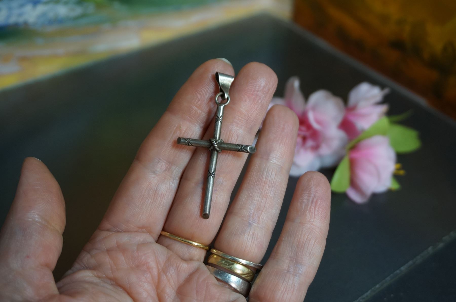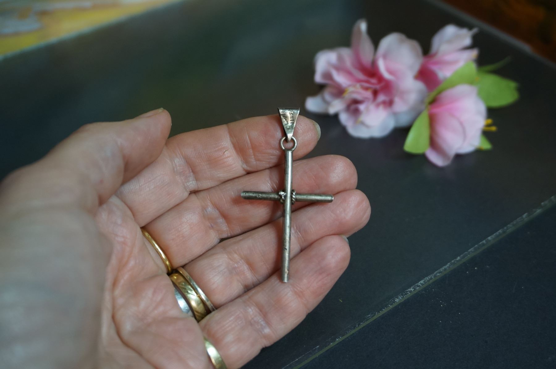 Vintage silver large cross pendant