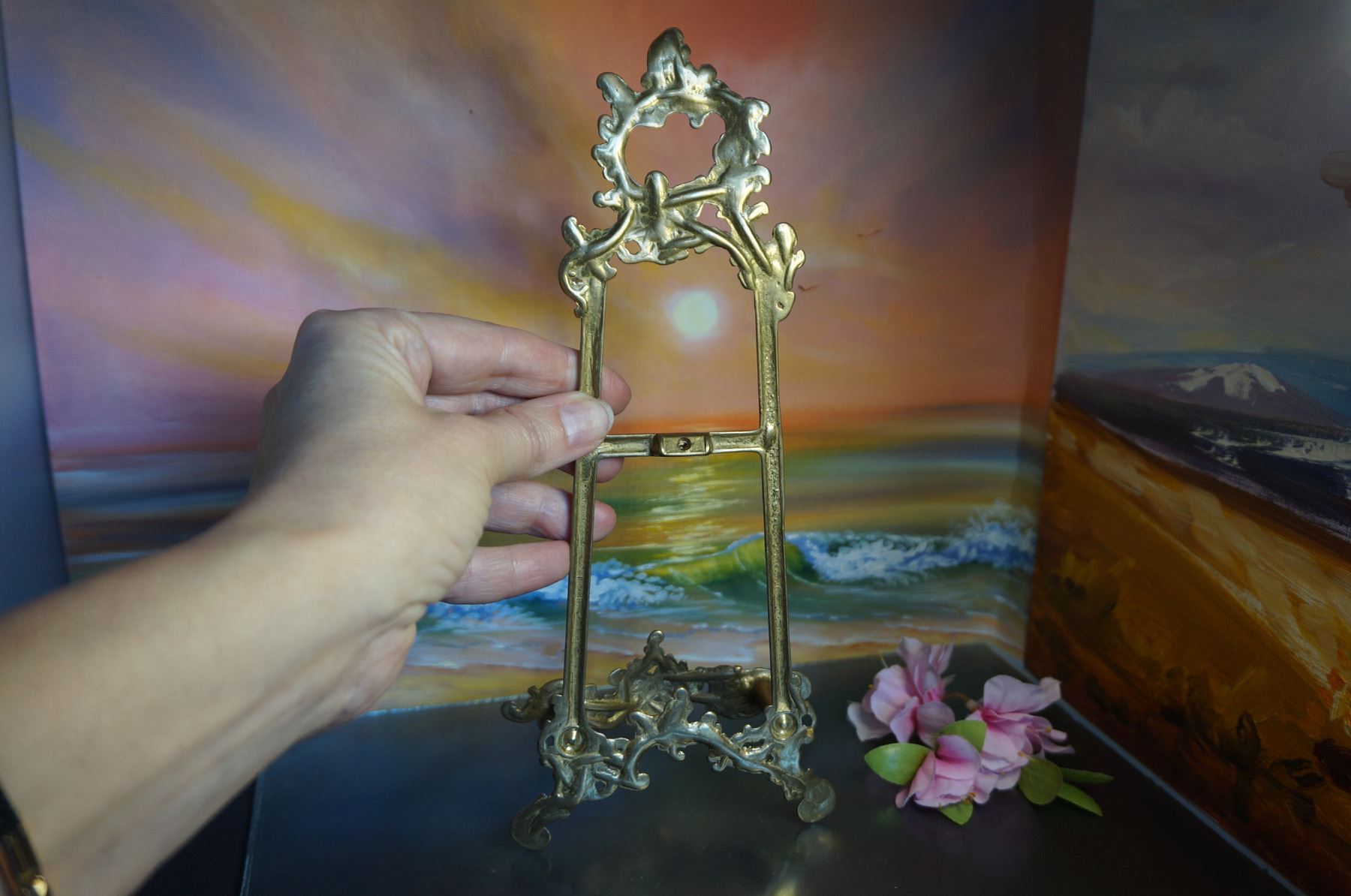 Vintage solid brass picture easel