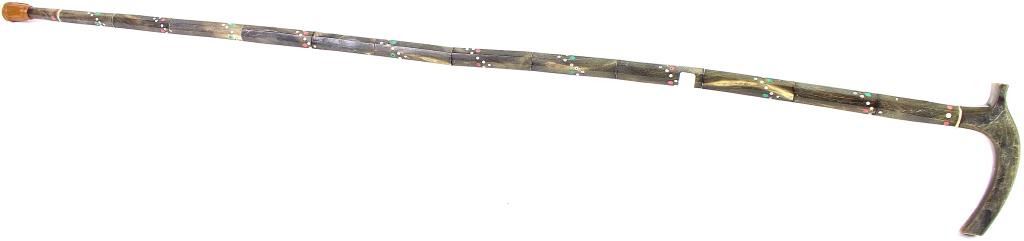Vintage stacked horn Mans walking stick with horn handle, 36" long.with horn handle, 36" long.