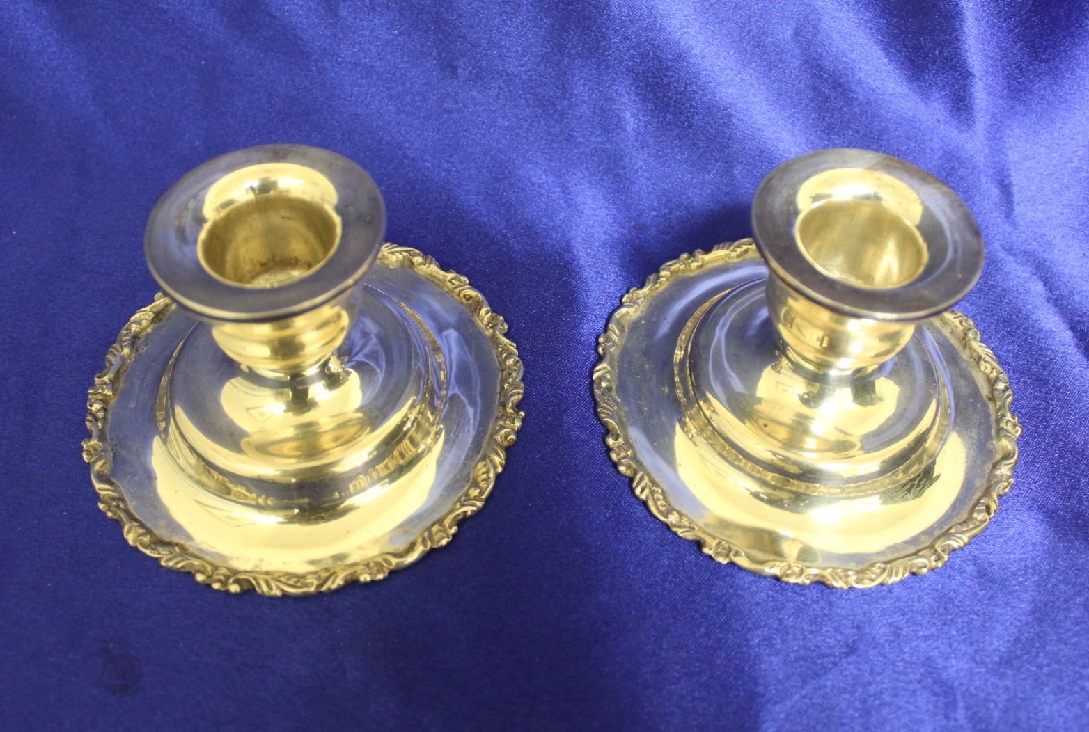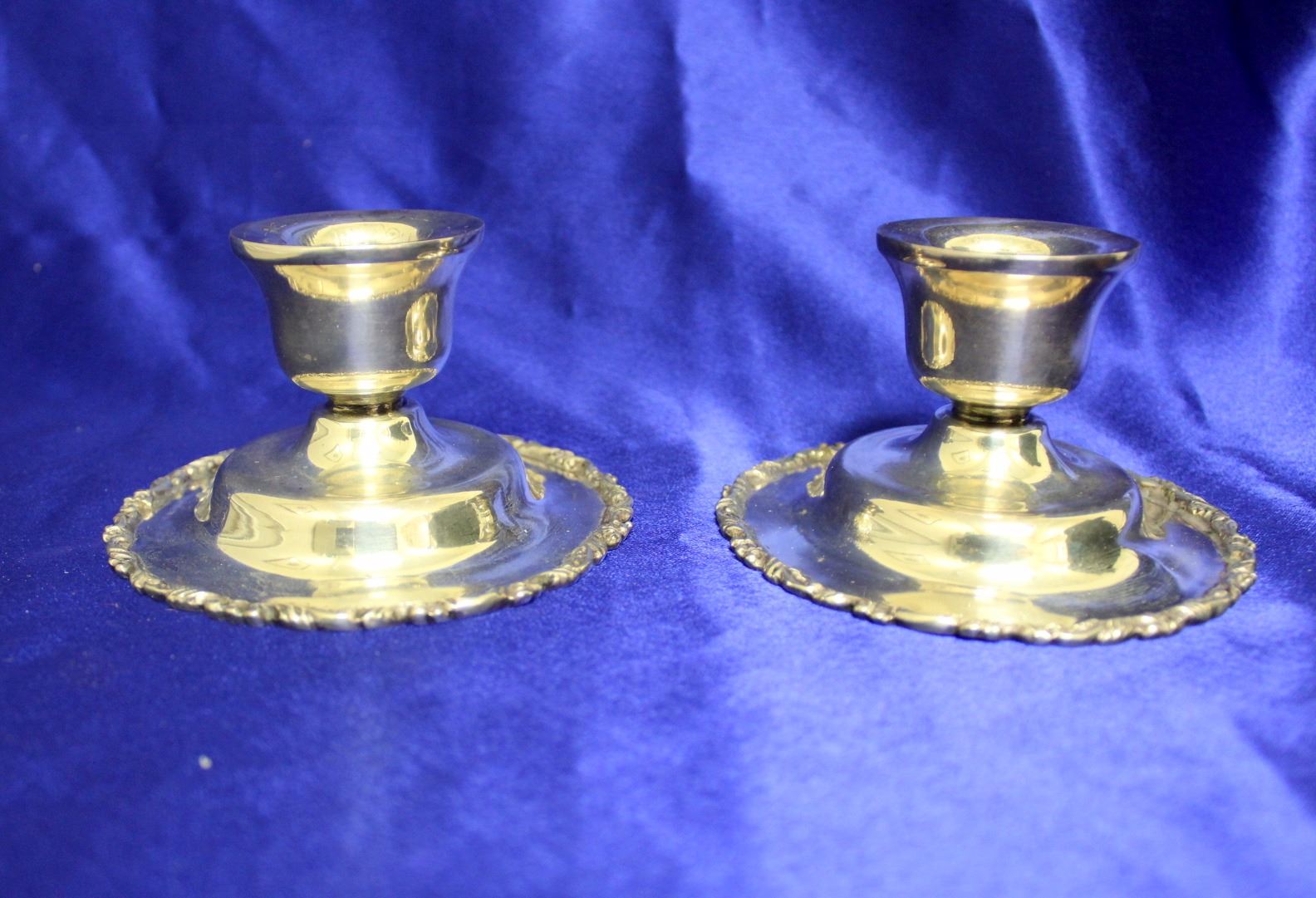 Vintage sterling silver candle sticks which measure 2 1/4" high and 4 1/4" in diameter at the base. No dents, they are in excellent condition. 9 1/2 oz of sterling silver