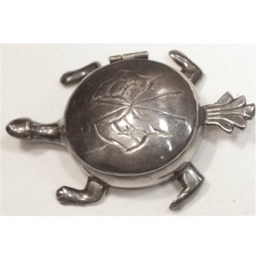 <tr><td>Title:Vintage sterling pill trinket box TURTLE UNIQUE</td></tr>
