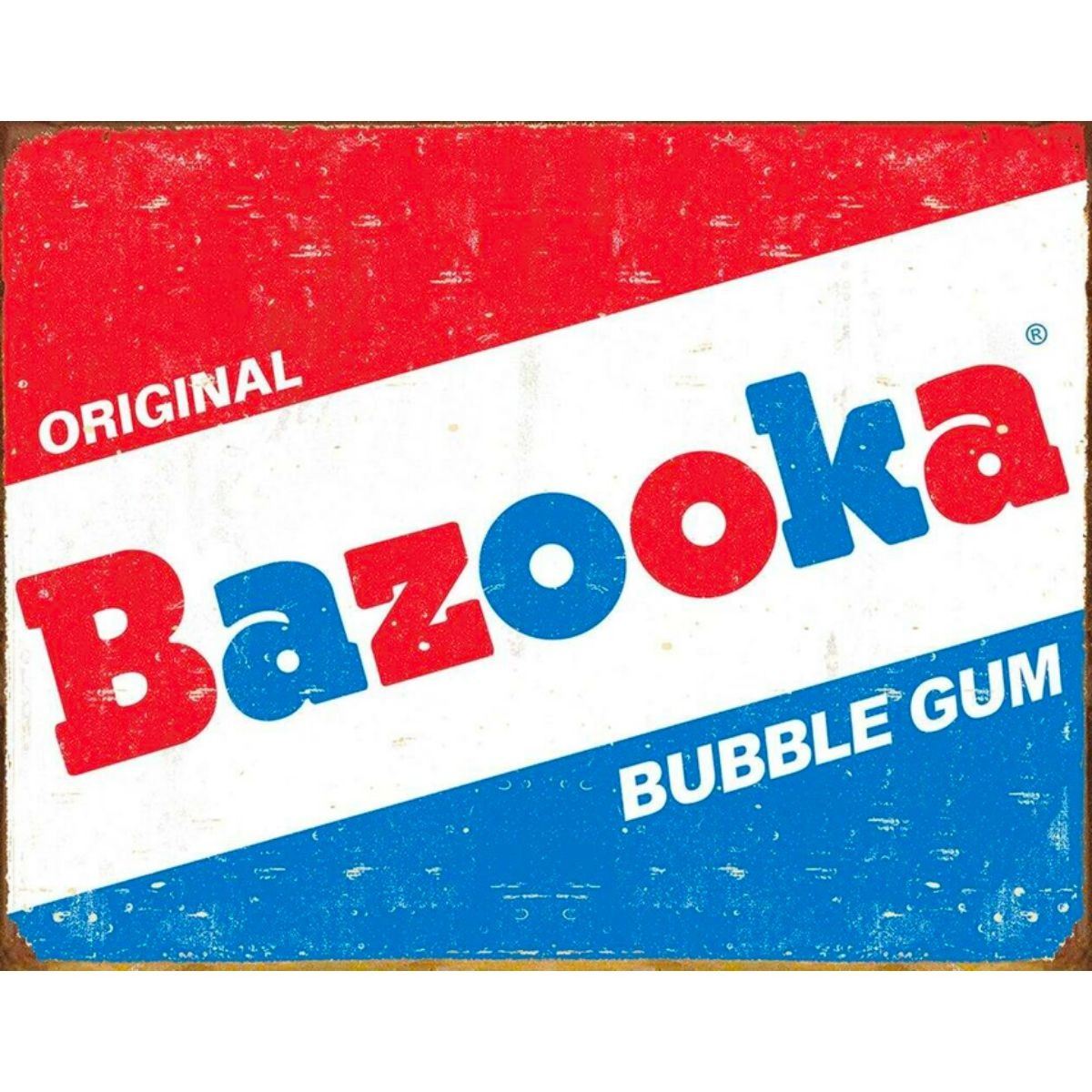 Vintage-style Bazooka bubble gum metal sign. 12 1/2" X 16" with pre-drilled holes for mounting.Â