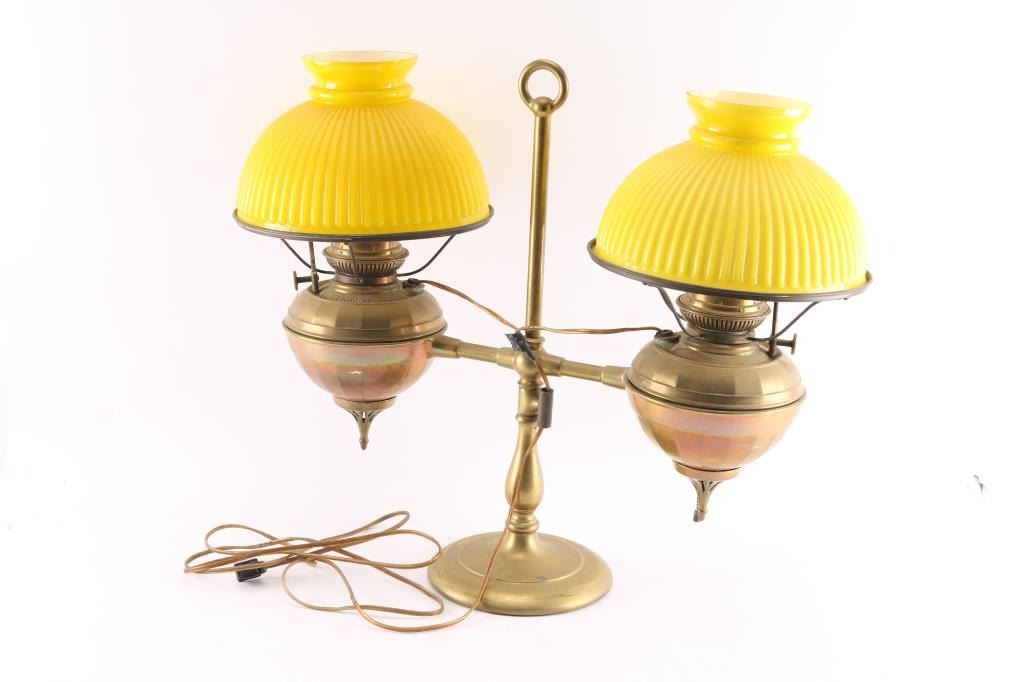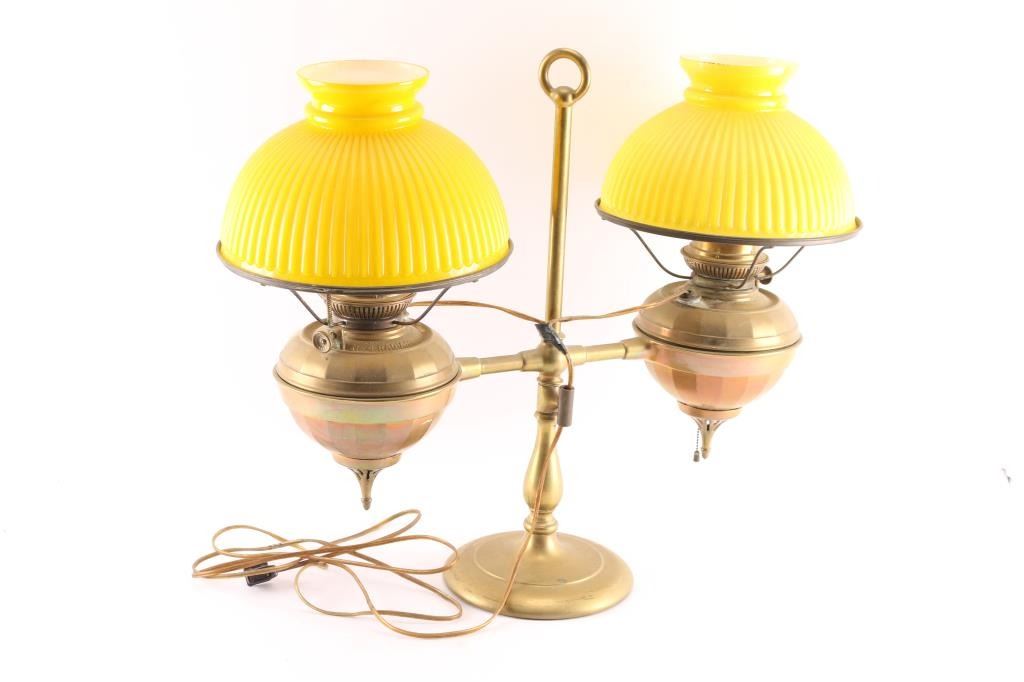 21"Hx25"W with two yellow glass shades. Not in working condition.