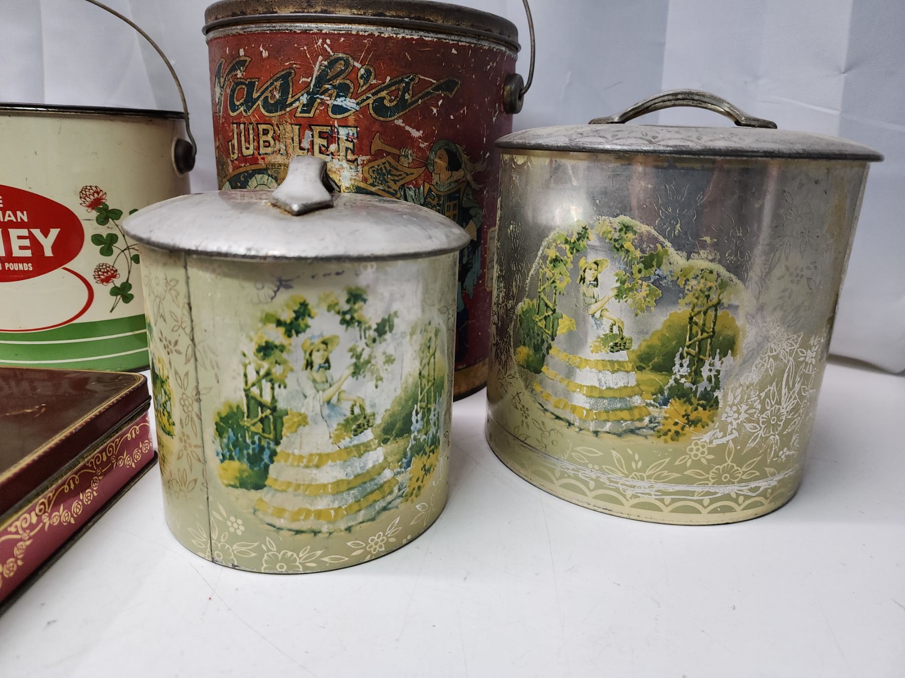 Vintage tins - Pure Honey, Nash's coffee, etc.