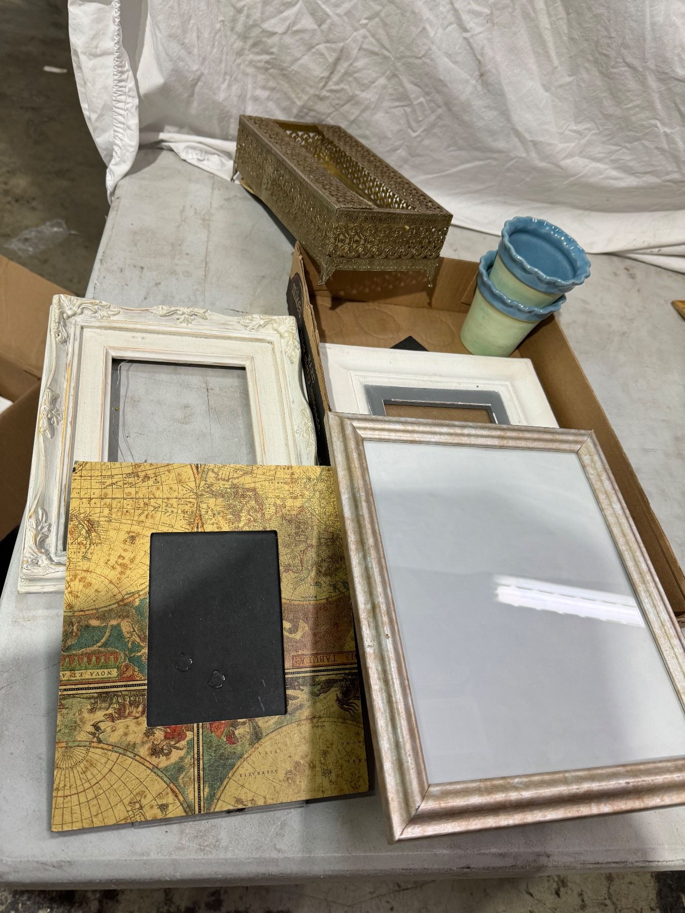 Vintage tissue holder and frames etc