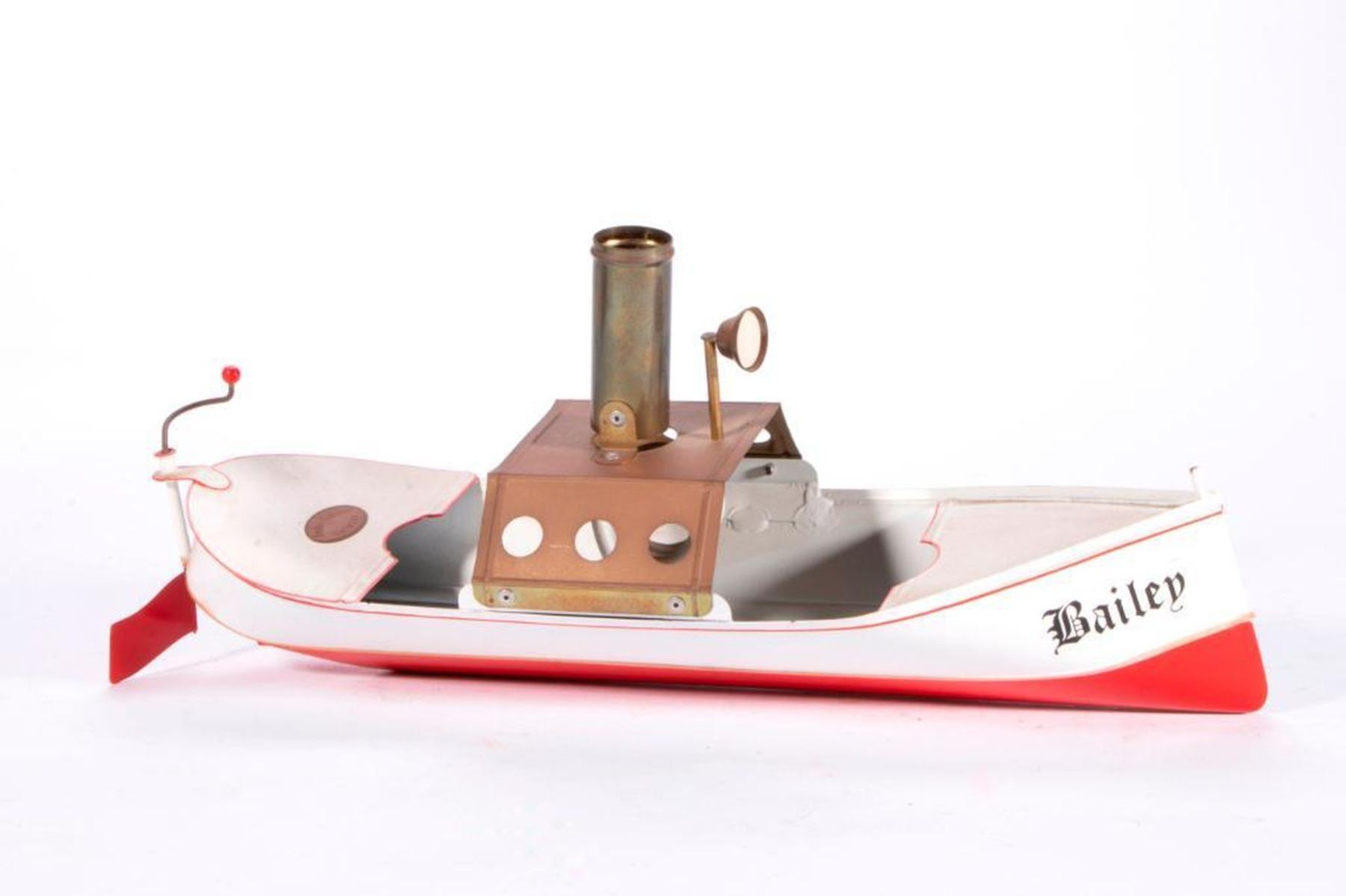 A German Tuchler and Walther toy boat. 6 inches high x 14 x 4 1/2. Items are sold as is. Please inquire about condition if not otherwise stated.