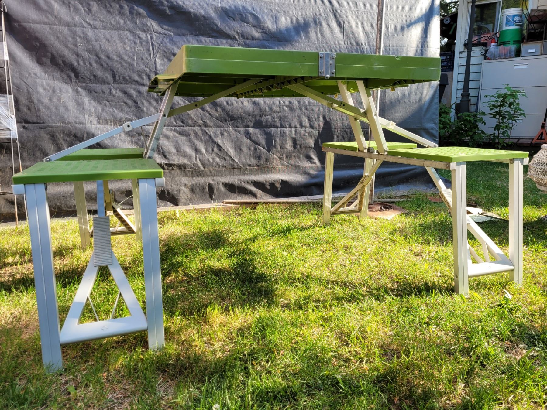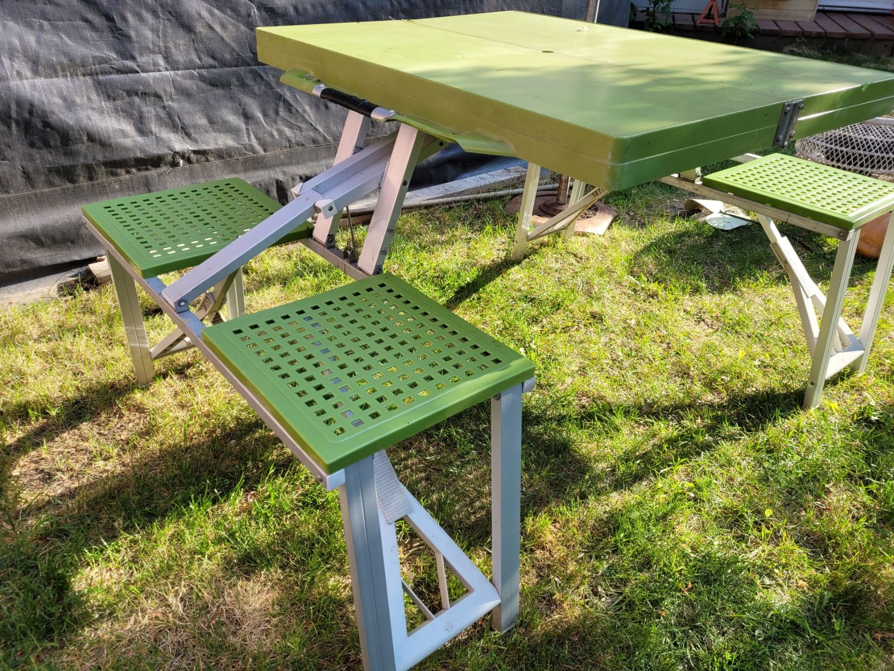 Vintage travel picnic table & chairs. Folds into carrying case.