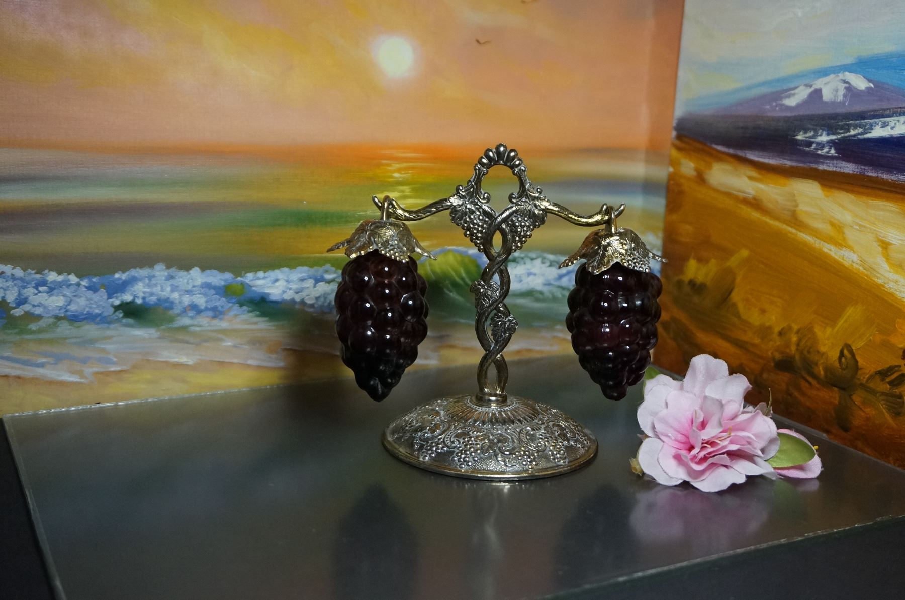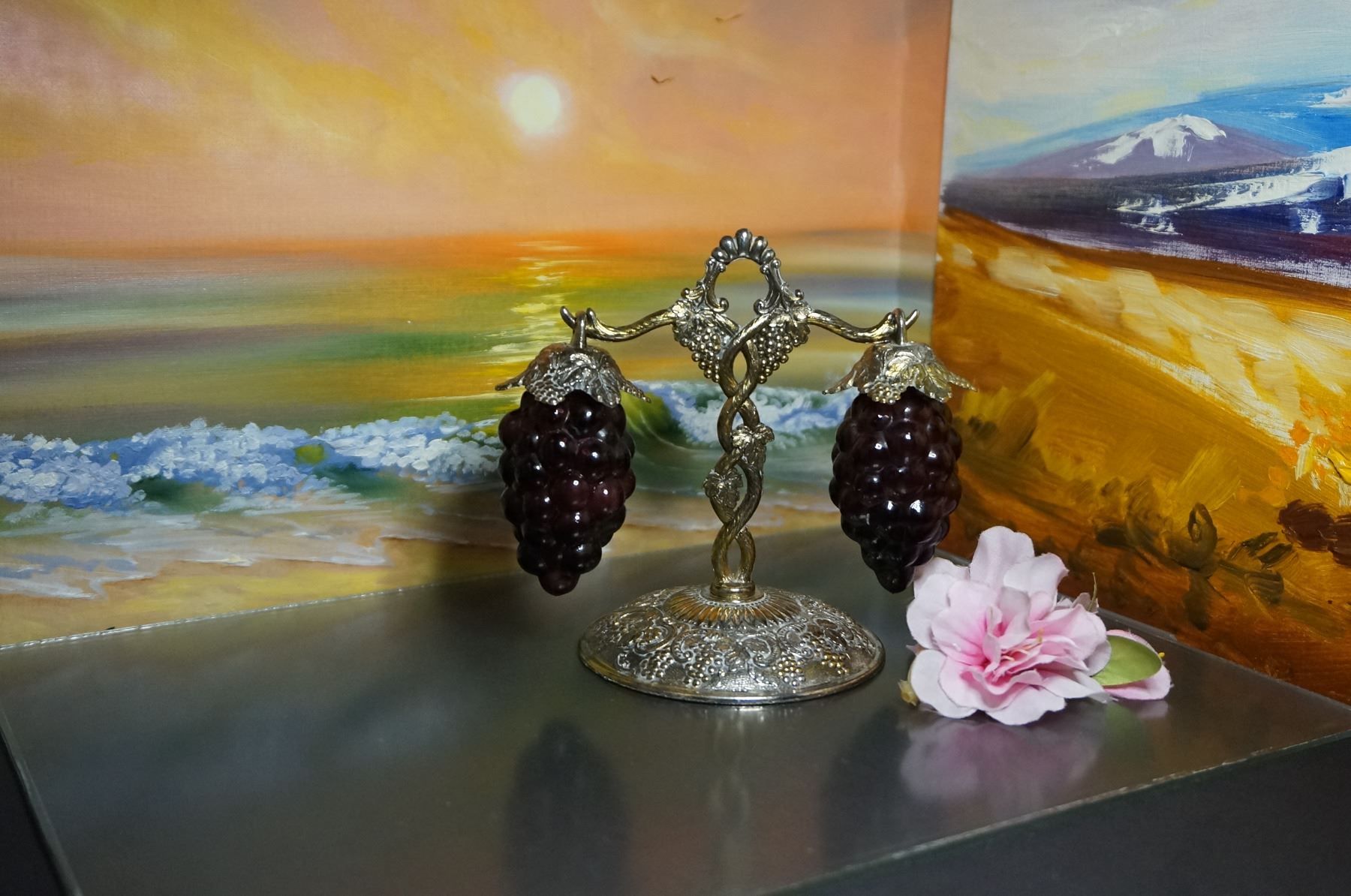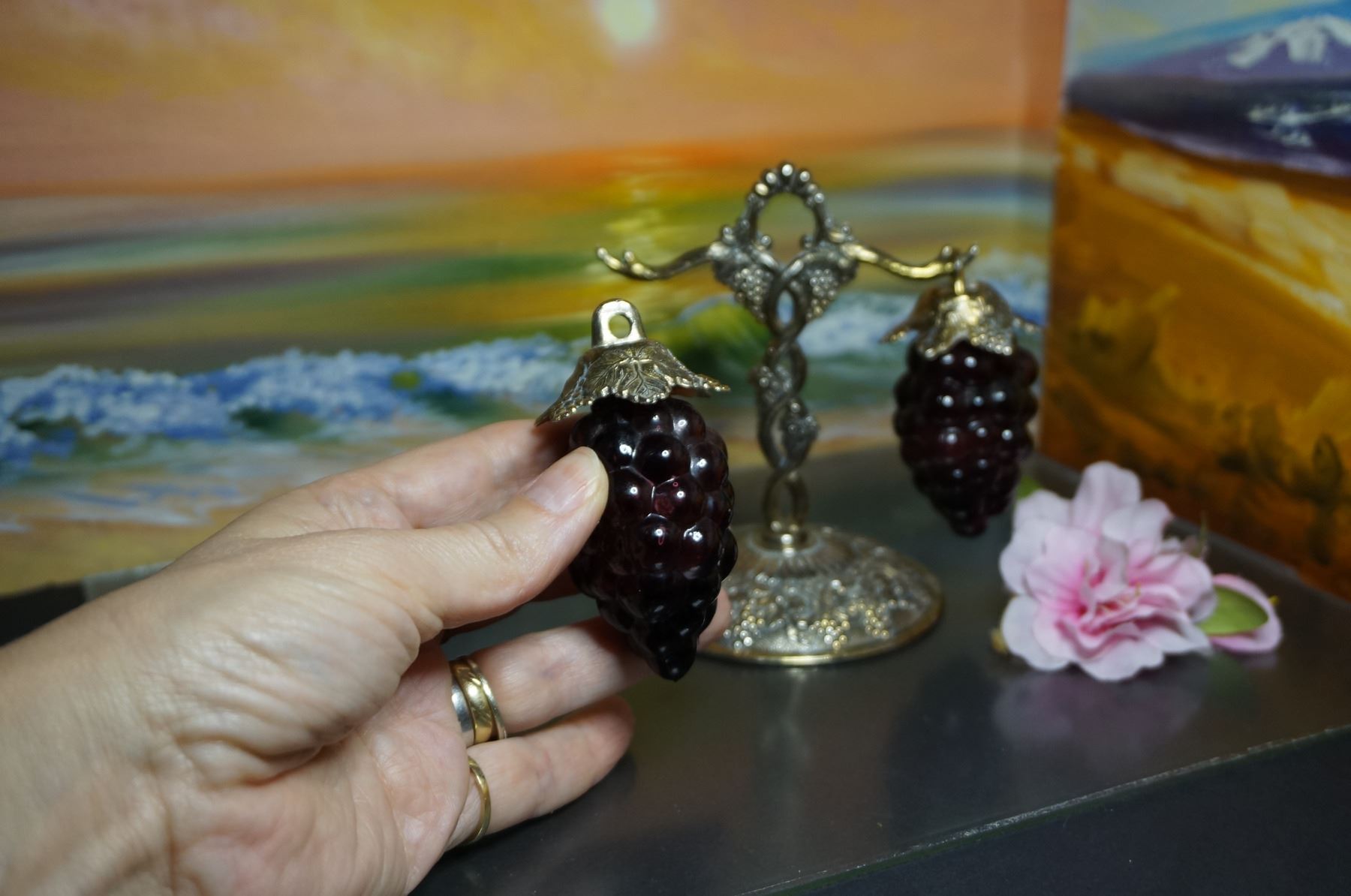 Vintage two Hanging Glass Grape Salt and Pepper shakers Metal is 5 inch tall 5,5 wide and 3,5 deep