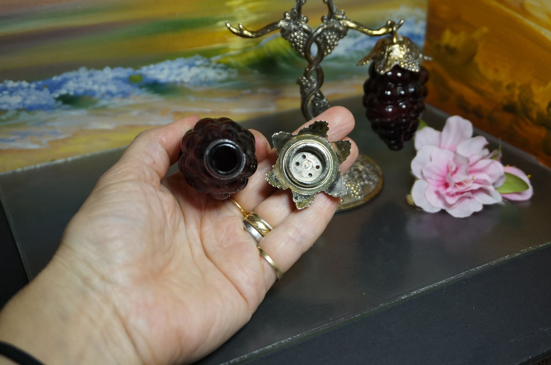 Vintage two Hanging Glass Grape Salt and Pepper shakers Metal
