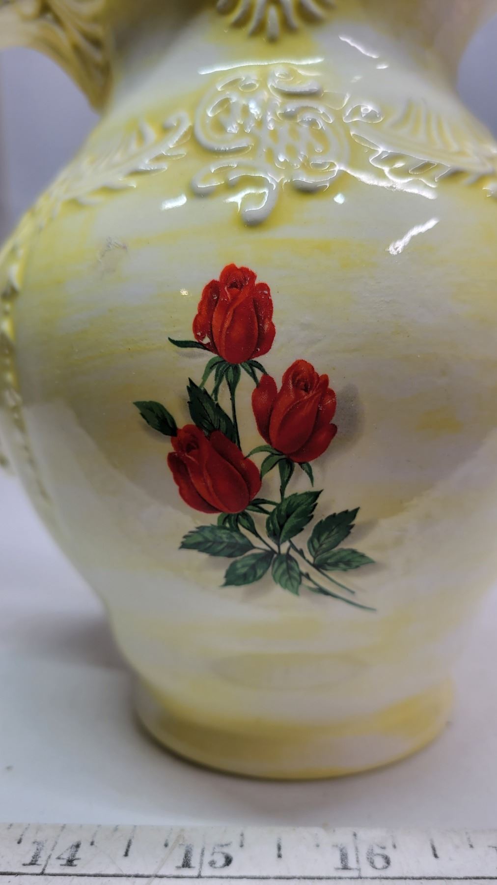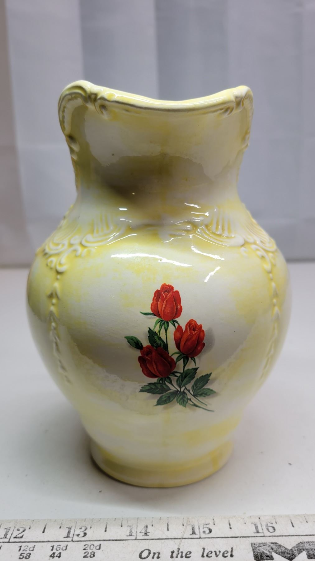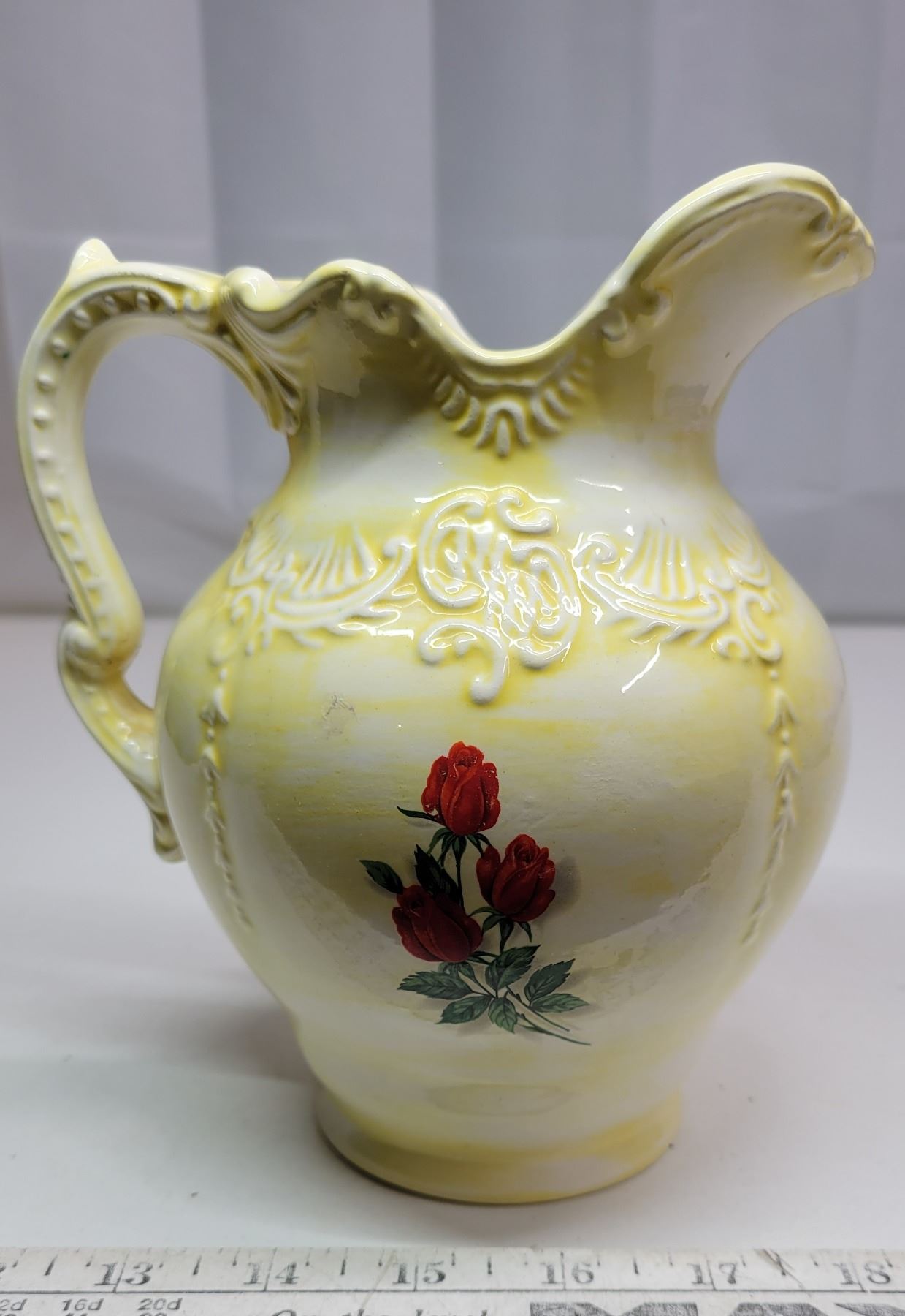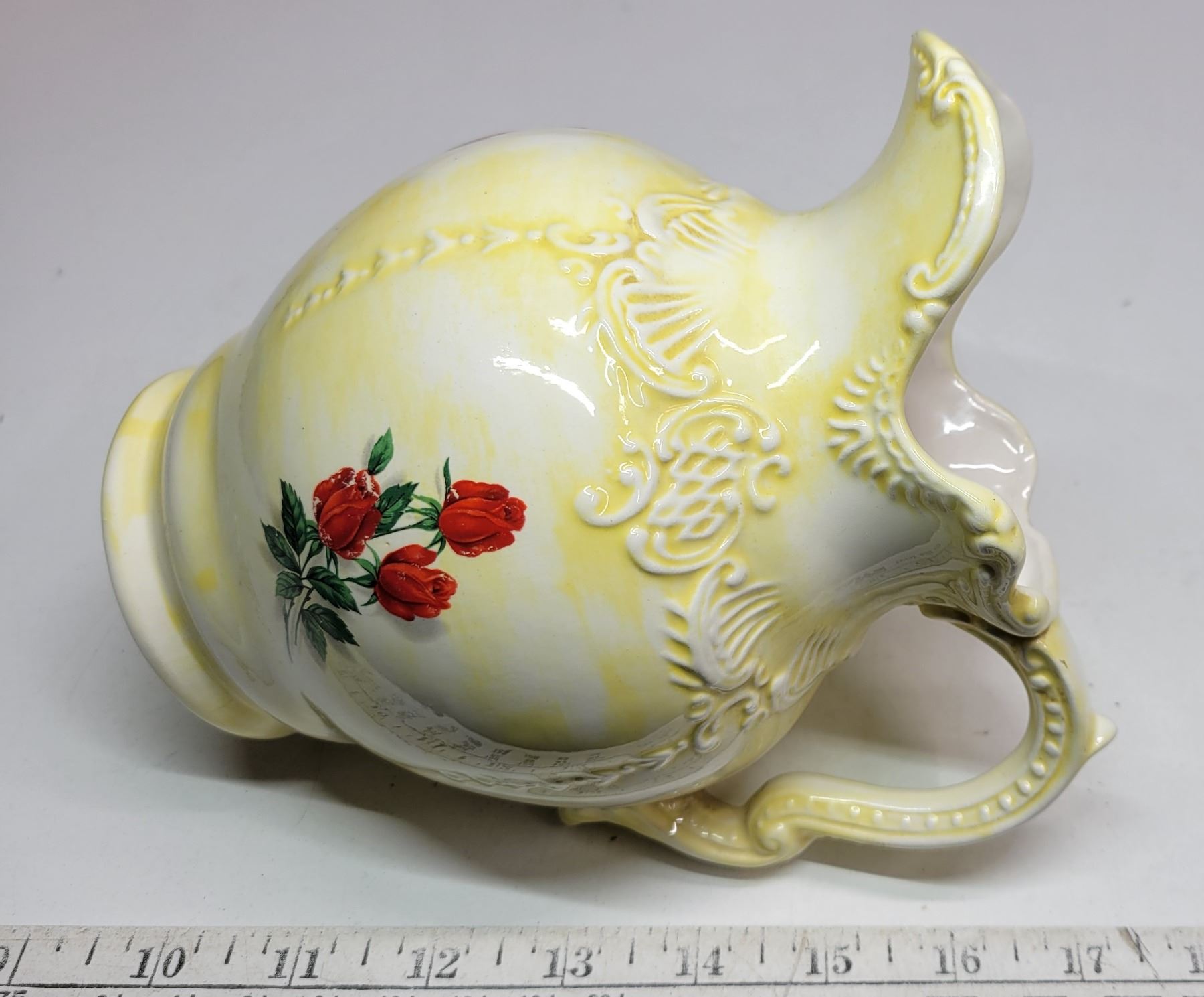 Vintage ware – Parakeet Metal Serving Tray, “Aynels” Pitcher, Canada #3917 Maple Syrup Pottery Container