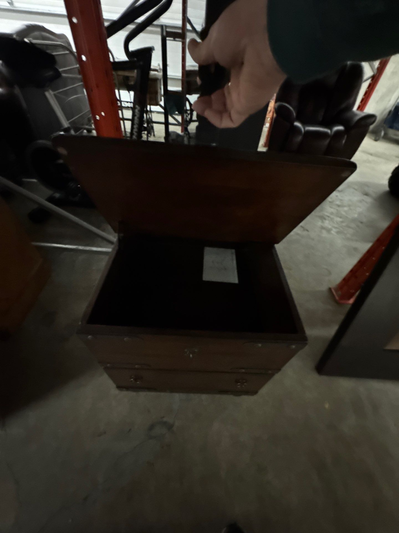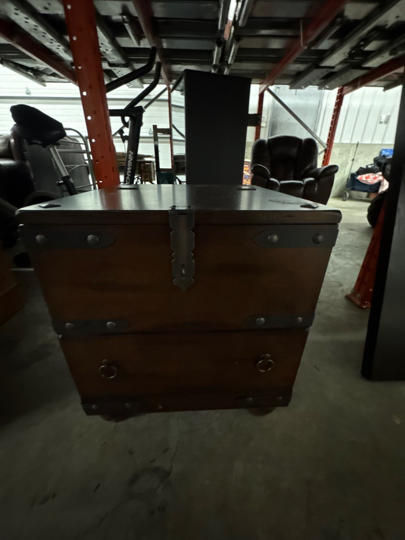 Vintage wooden hutch. Two drawers and latches.