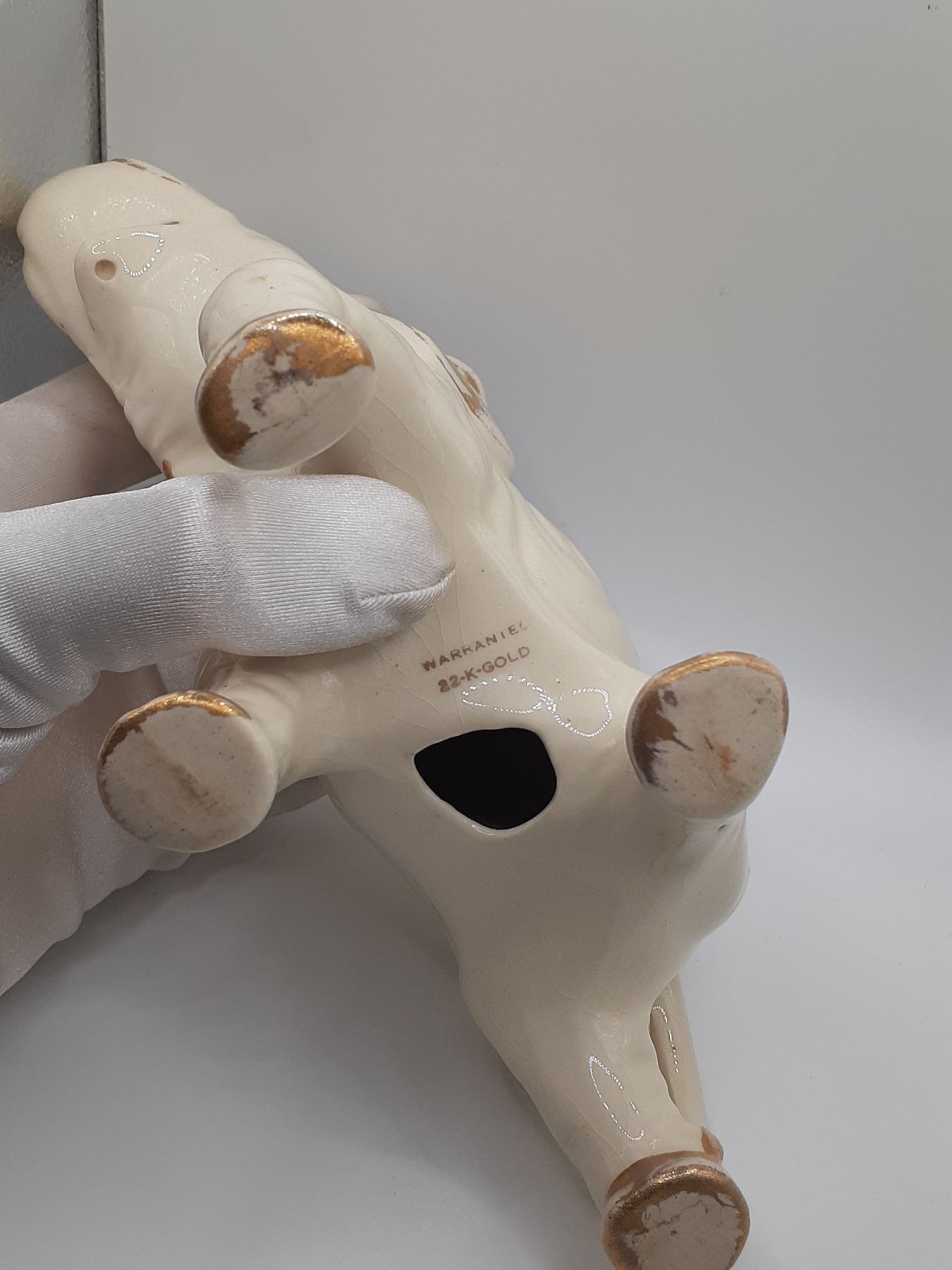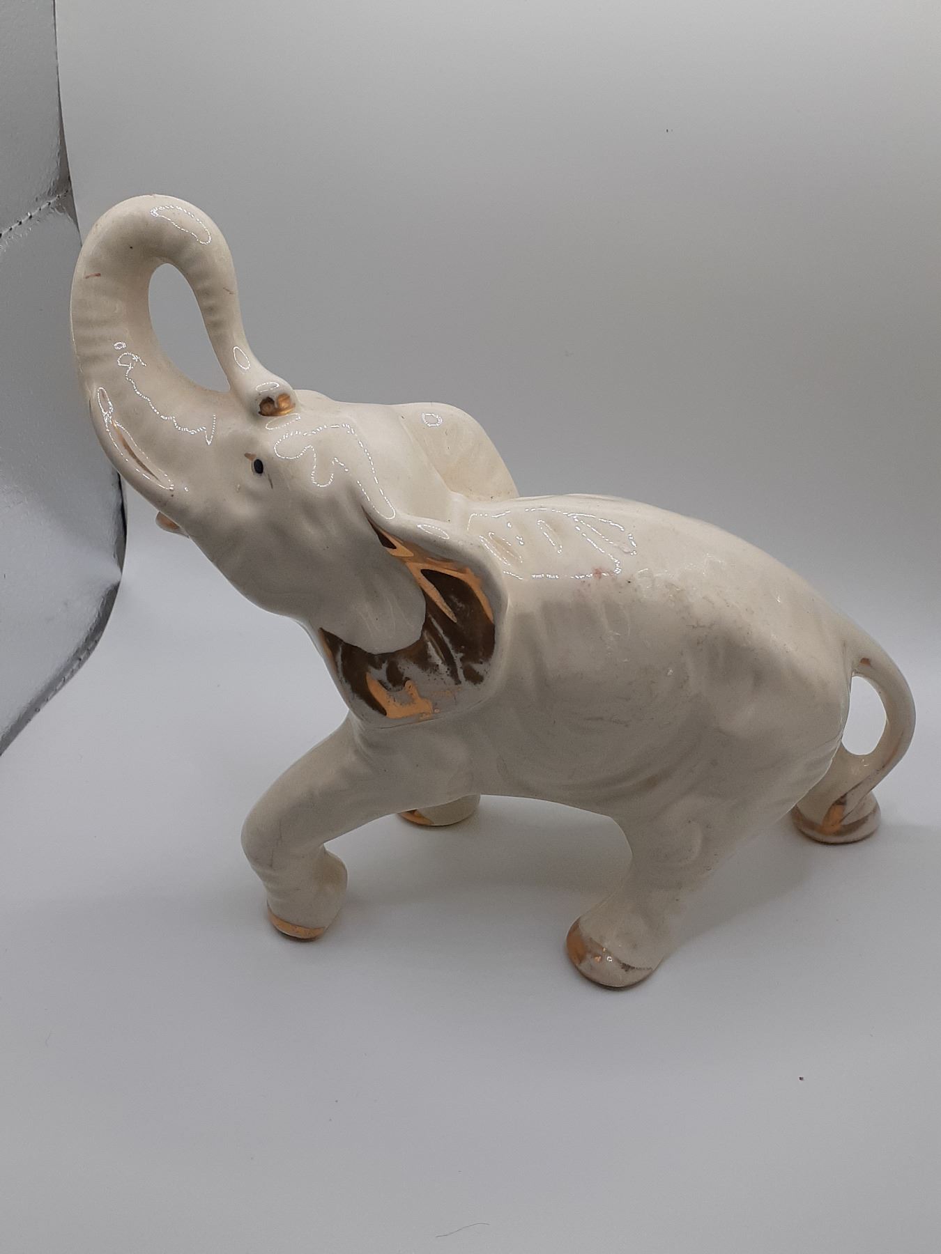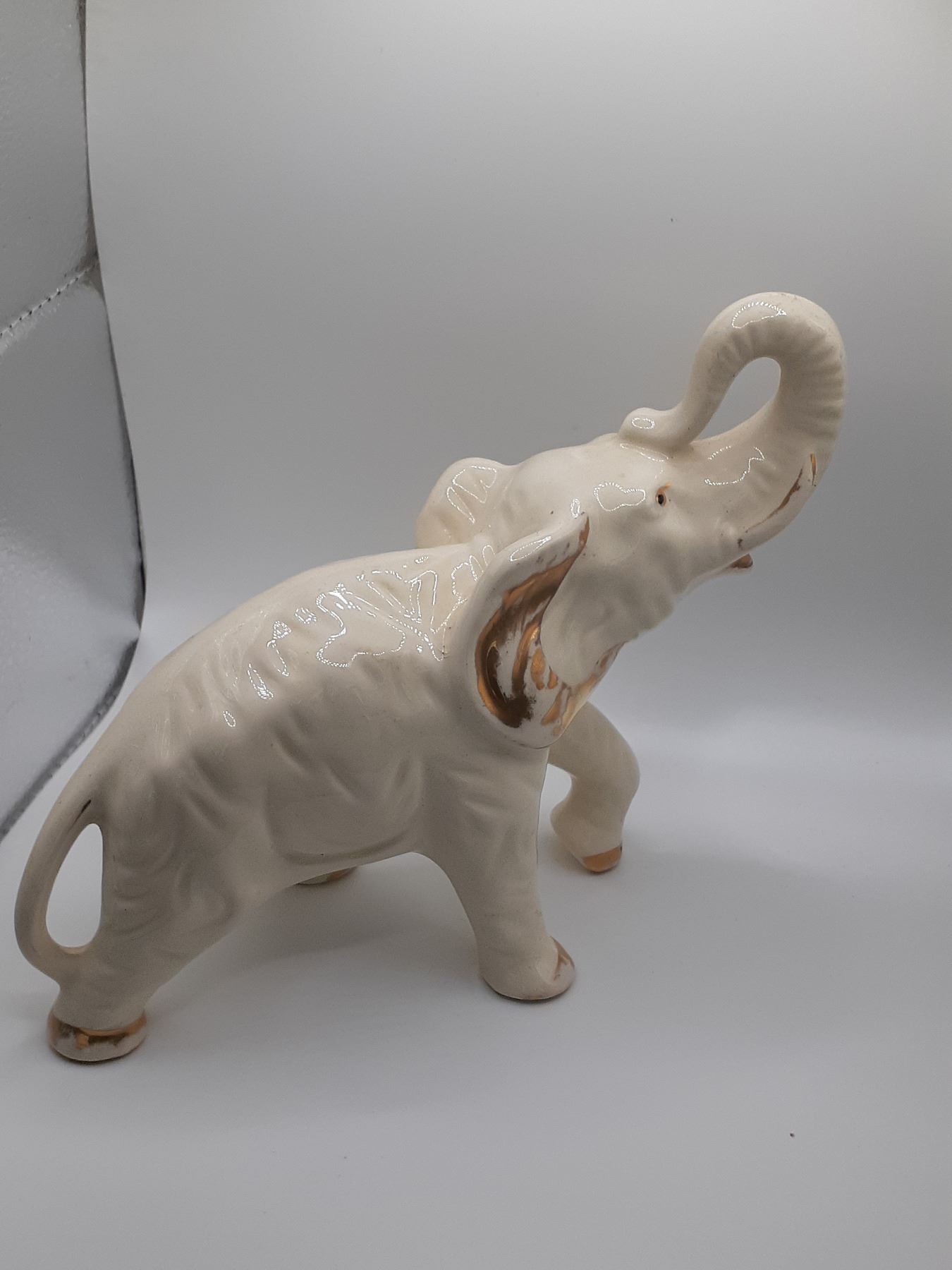 white porcelain elephant with 22 kt gold decor 4 inch tall an 2,5x8,5 inch wide