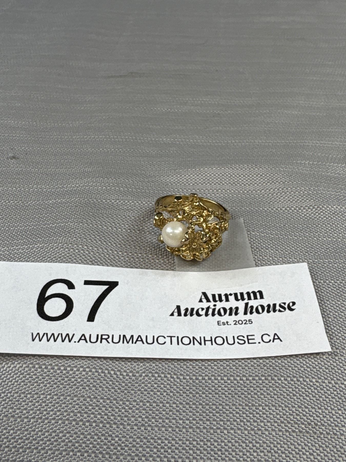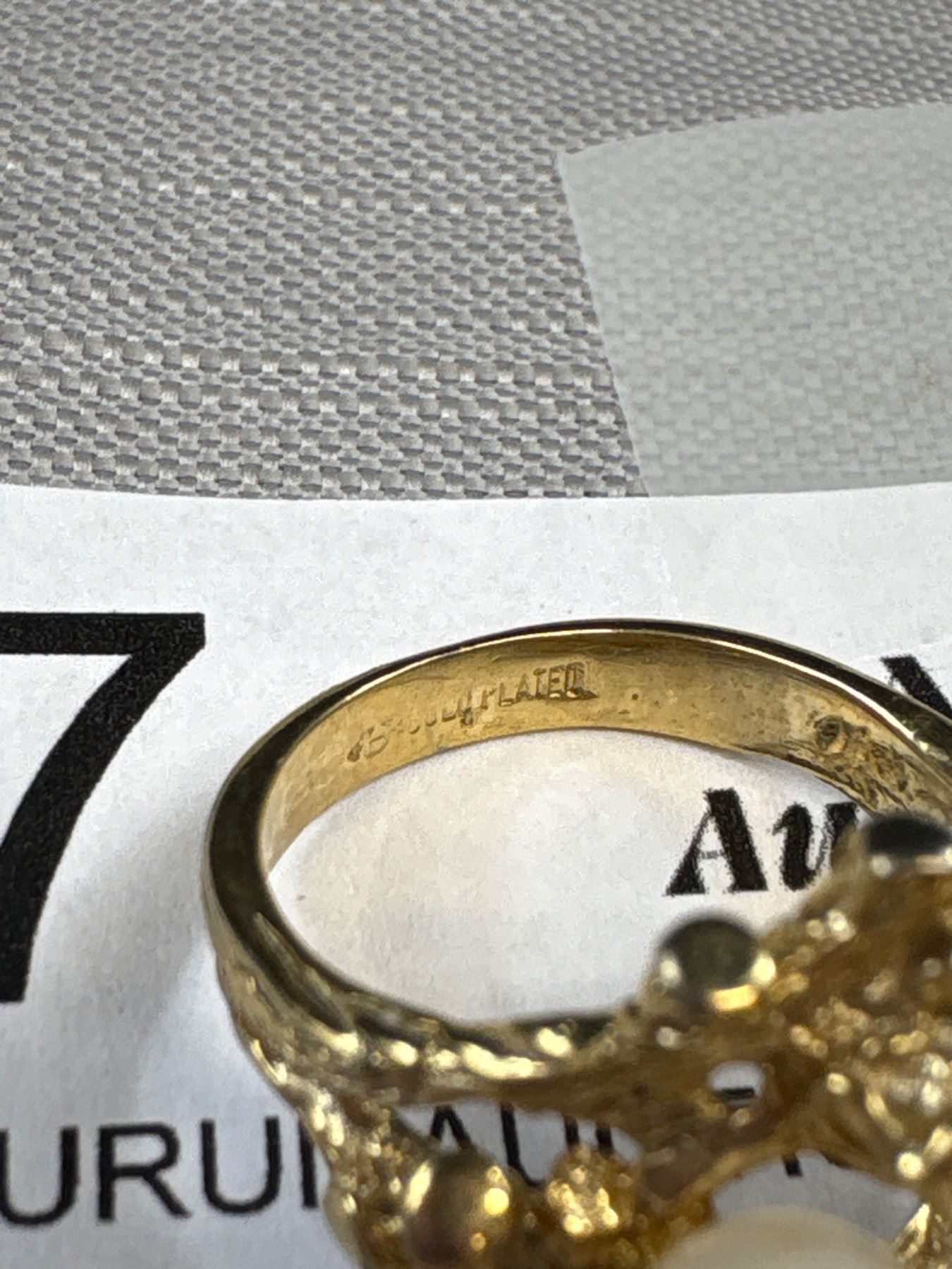Vintange Solid Genuine Pearl Gold Ring Marked Gold Plated