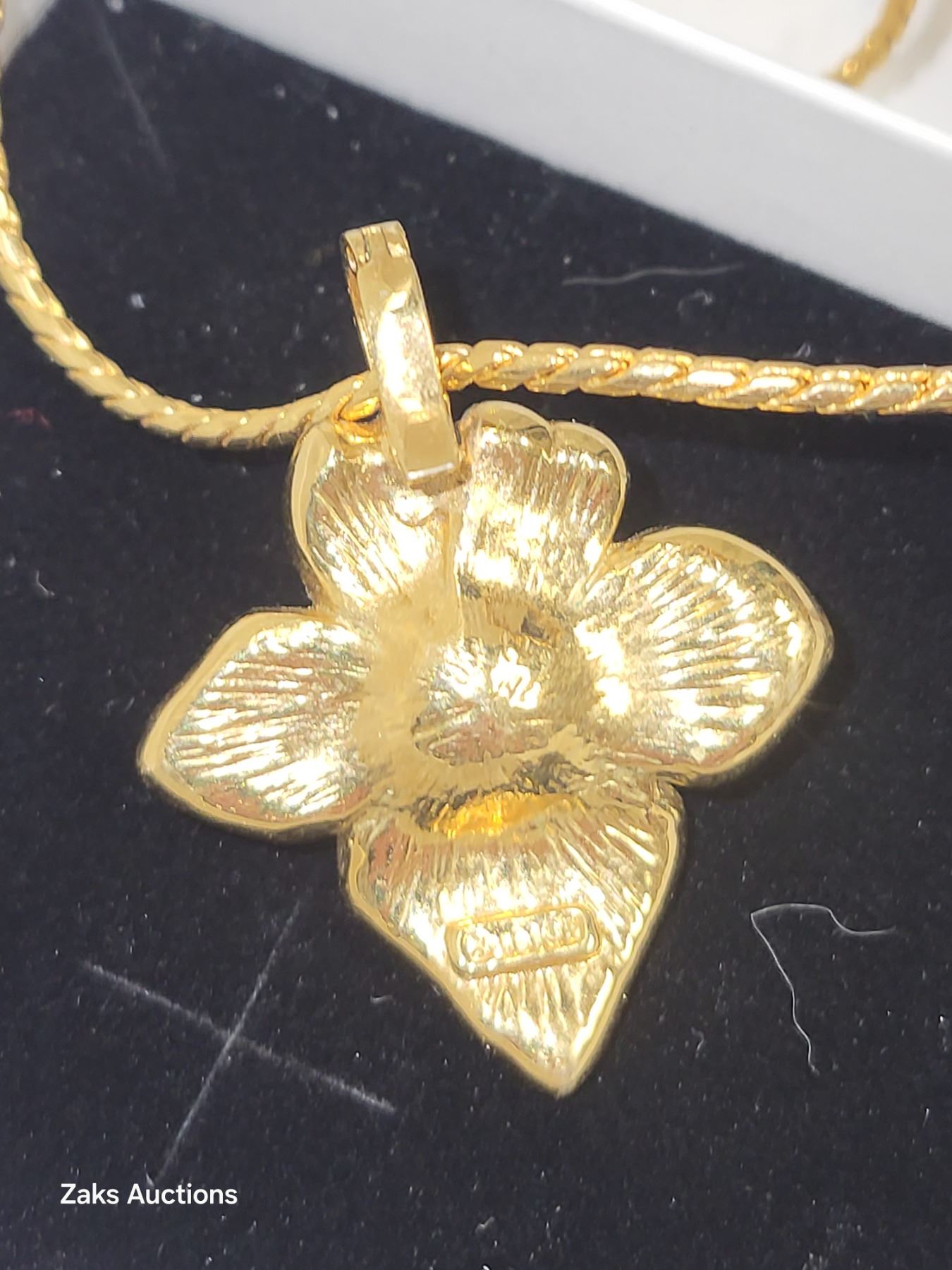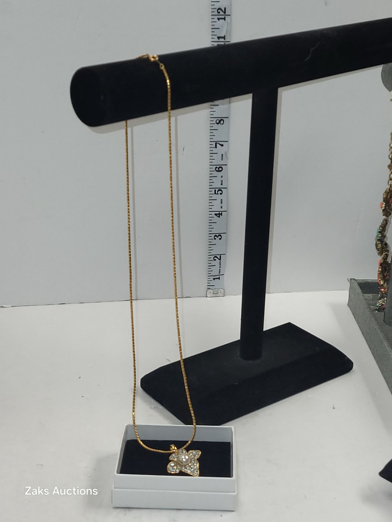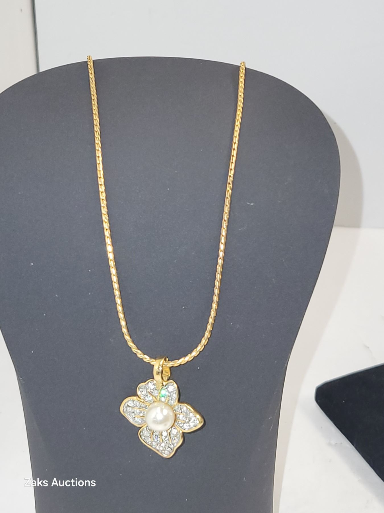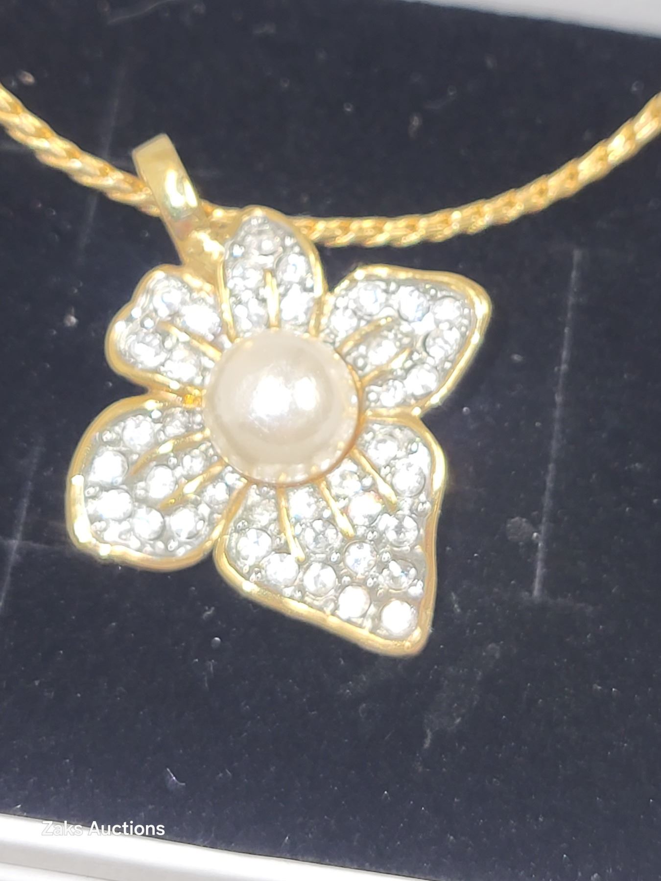Vintge Signed Butler Simulated Pearl & Crystal Pendant Necklace
