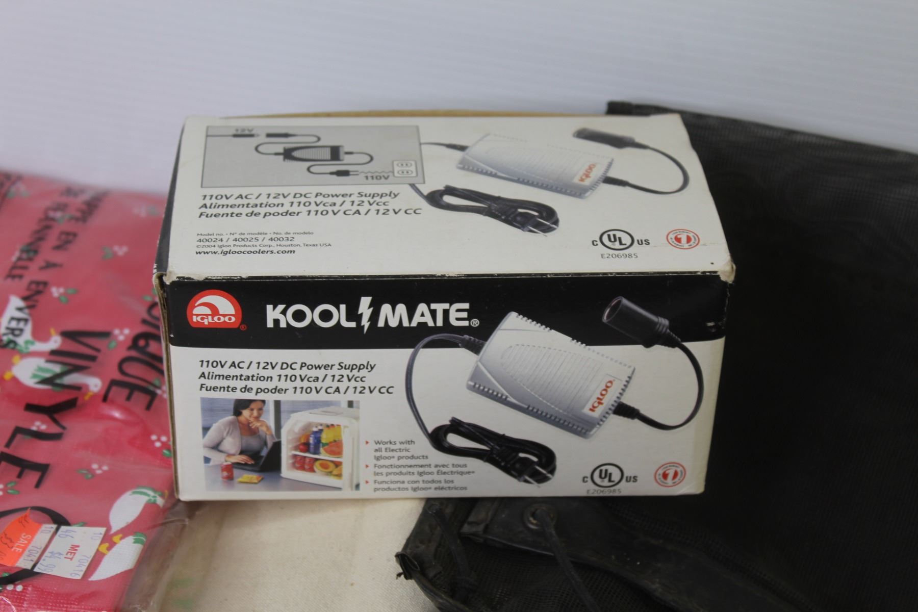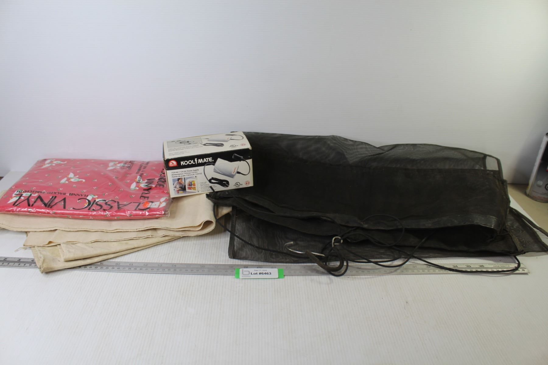 Vinyl Tablecloth - Canvas Piece - Vehicle Grill Bug Screen (48" x 24") - Igloo Kool Mate Power Supply (untested)