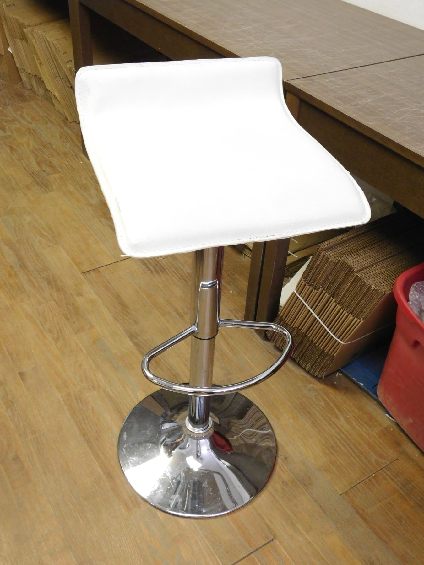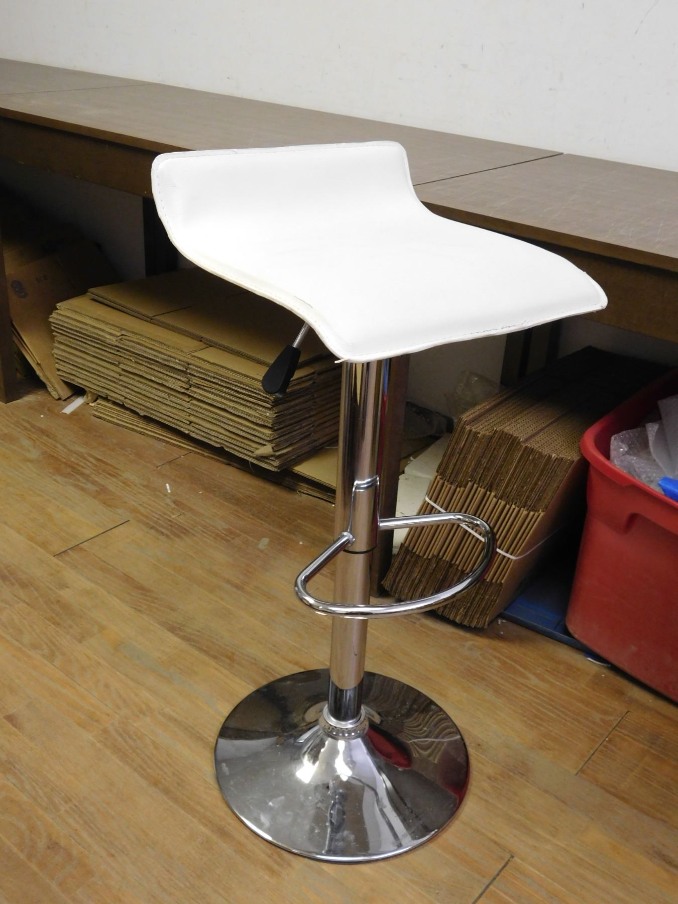 Vinyl Upholstered White and Chrome Bar Stool Adjustable