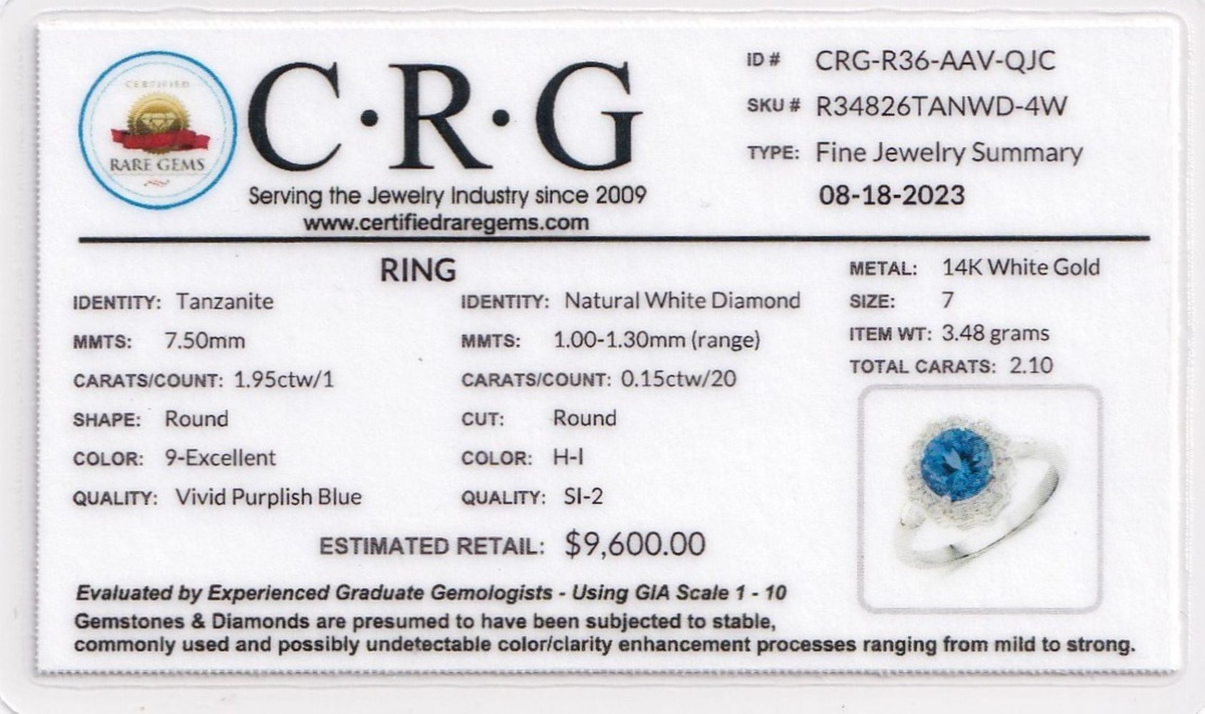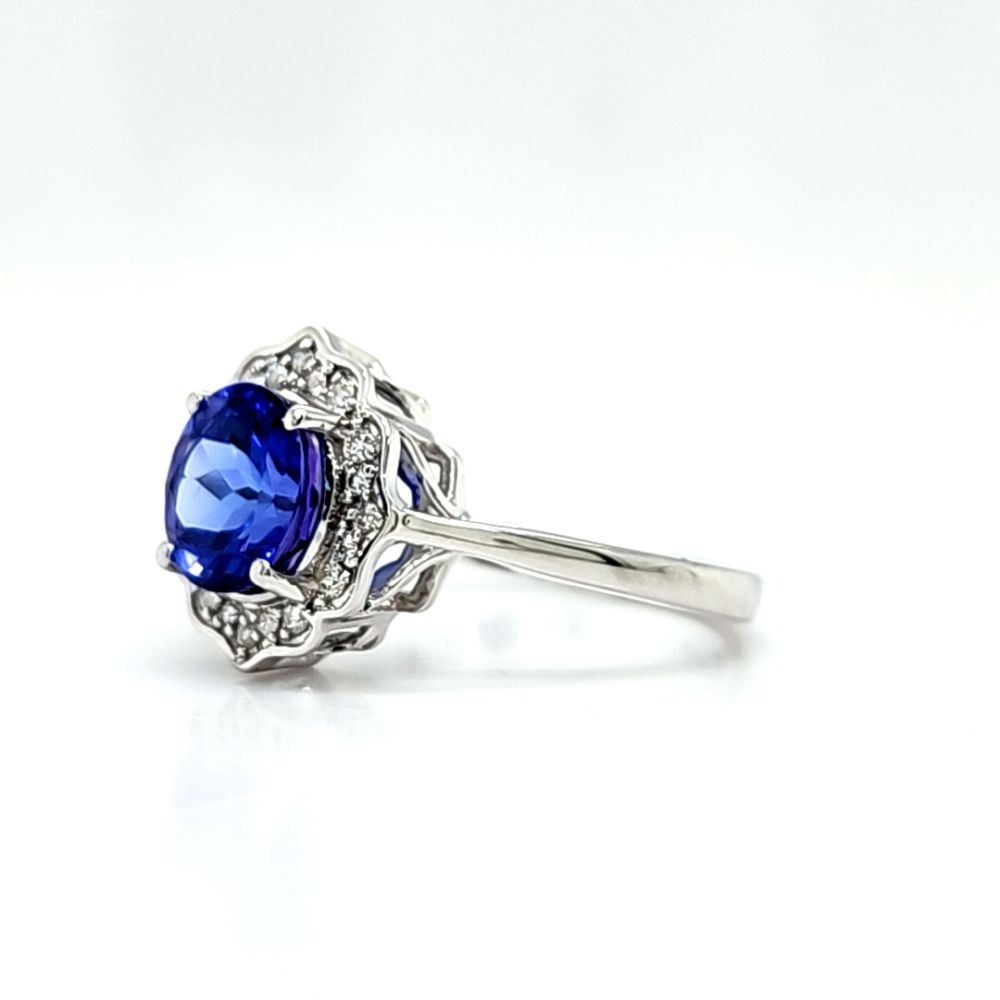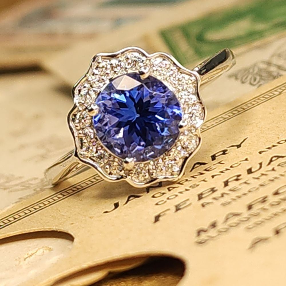 DESCRIPTION DETAIL: Genuine Tanzanite and Earth-Mined Diamond Ring.& nbsp;