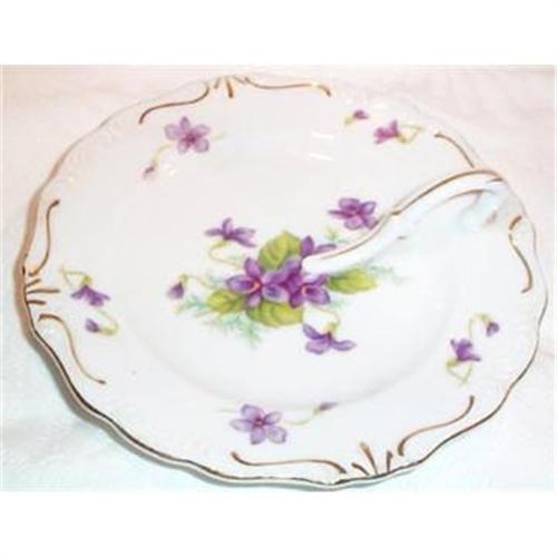 This fantastic Porcelain Lemon Dish is decorated with lovely blooming violets. The dish is in SUPERIOR condition with no chips, cracks, dings or hairlines and it measures 6" in diameter. It was made in Japan and is marked with the manufacturers logo on the bottom.