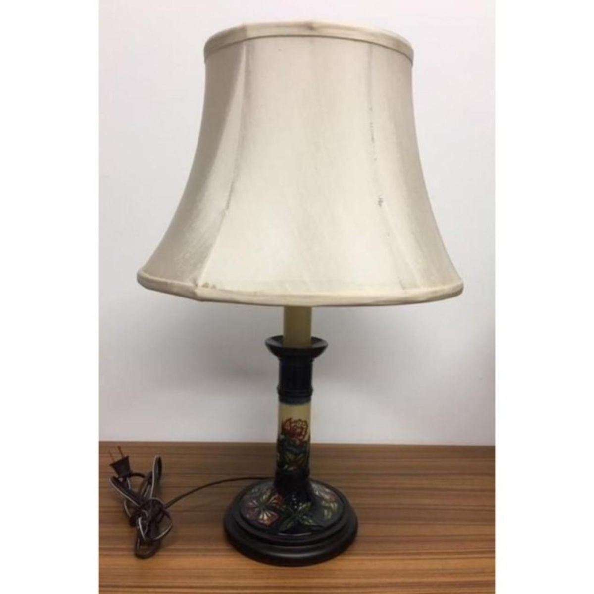 A violet pattern Moorcroft Porcelain lamp. William Moorcroft opened his own pottery company in England in 1913 where all pieces were hand signed. Moorcroft is identified by its distinctive tube-lined highlights and relief work. Moorcroft was very popular and won a gold medal in 1904 at the St. Louis International Exhibition. The pre-1945 Moorcroft tends to be the most popular collectibles and command the most value. This lamp is in Excellent Condition and Working Order. - All items may be shipped or picked up locally within one week of sale. We will provide shipping estimates to the winning bidders or winning bidders may arrange their own shipping.