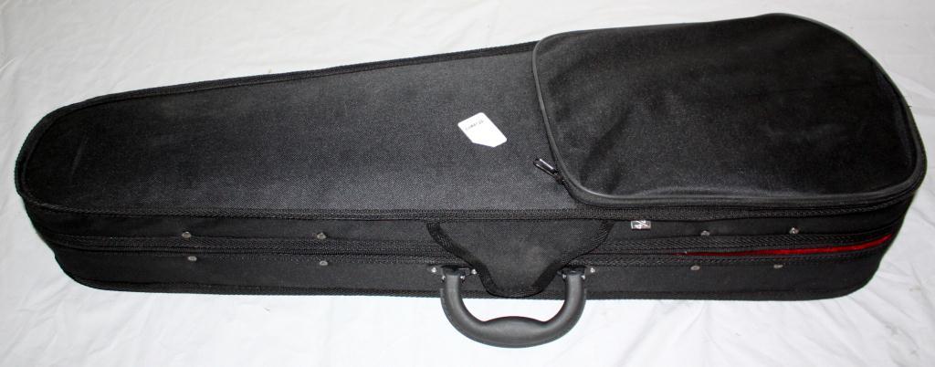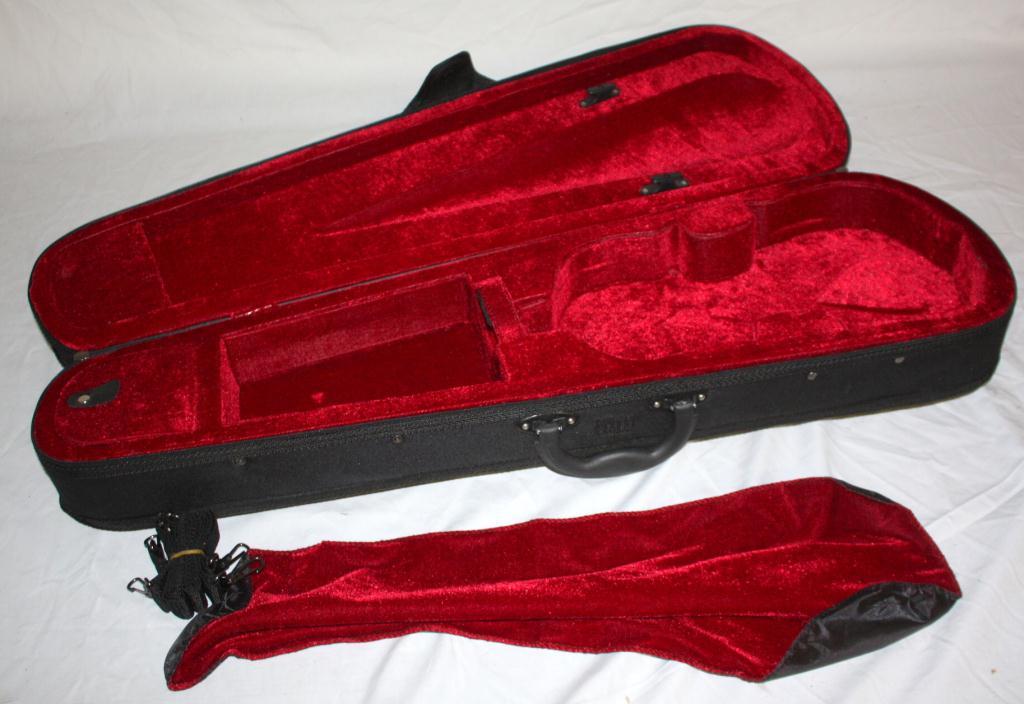 Molded with instrument cover-hard shell, place for bow and accessories. Canvas cover velveteen interior style