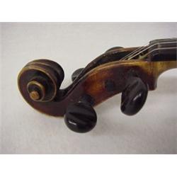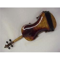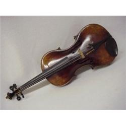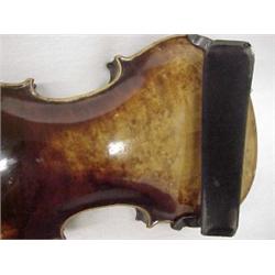 Violin, paper label in side Jacobus Stainer in Abfam prope Oehipontum, 1674, burled wood on back and neck, chin rest made in Stockholm Sweden, 23 1/4" long