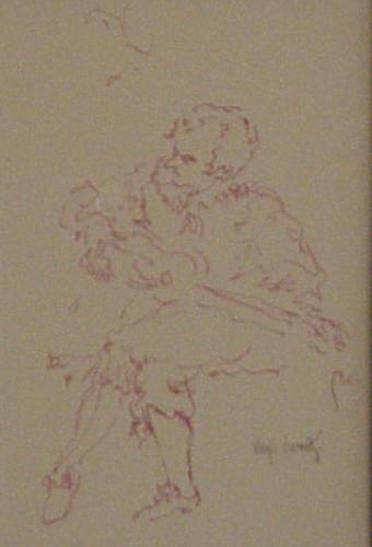 THE GUITARIST, ink drawing on paper, 10 x 6 ½”, signed lower right, framed with glass. $100/200