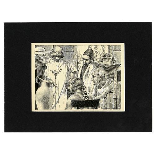 <B>Virgil Finlay - "A Midsummer Night's Dream," page 17 Illustration Original Art (Popular Fiction Publishing Co., 1935).</B></I> Virgil Finlay burst upon the professional fantasy illustration scene at the age of twenty-one when his drawings were printed in the December, 1935 issue of the <B>Weird Tales</B></I> pulp. Editor Farnsworth Wright, recognizing Finlay's incredible talent, also assigned him to the first of a proposed series of illustrated reprints of Shakespeare's plays, <B>A Midsummer Night's Dream.</B></I> The trade paperback printed twenty-five gorgeous Finlay illustrations. This surreal scene hails from Act I, Scene II, and had a caption which read, "Is All Our Company Here?" The illustration has an image area that measures 7" x 5.5", and the art is in Excellent condition.