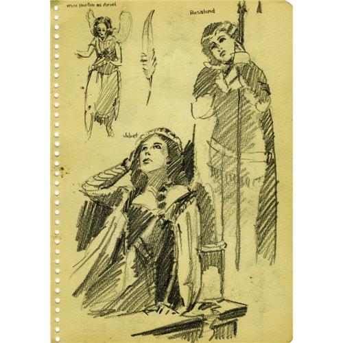 <B>Virgil Finlay - "A Midsummer Night's Dream" Sketch Original Art, Group of 42 (Popular Fiction Publishing Co., 1935).</B></I> Virgil Finlay's imaginative and appealing illustrations make the unknowable seem so immediate and real. His distinct, jewel-like renditions employ the painstaking stipple and crosshatching technique of an earlier era of illustration. From his gorgeous women to his terrifying monsters, to scenes from legendary pasts and fantastic futures, Finlay's delicate, precise style is truly inspiring. In addition to commissioning Finlay to draw multiple illustrations in nearly every issue of <B>Weird Tales</B></I> through 1939, its editor, Farnsworth Wright, chose him to illustrate the first in a proposed series of illustrated reprints of Shakespeare's plays, <B>A Midsummer Night's Dream</B></I>, which was published in 1936. Contained in this 5" x 7" sketchbook (with a hand-drawn cover), is a stellar selection of 42 preliminary studies that Finlay created for the project. There is a bit of aging apparent, otherwise, the work is in Very Good condition.